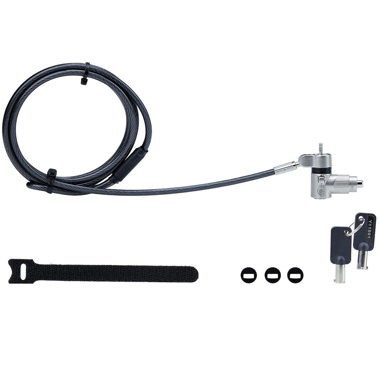Das vielseitige Sicherheitsschloss ist nicht nur auf Laptops oder Notebooks beschränkt. Verwenden Sie dieses Schloss, um andere Geräte wie Dockingstationen, Monitore, Drucker, SFF-Computer, Projektoren, Oszilloskope oder andere Büro- und Laborgeräte zu sichern, und erweitern Sie damit seinen Nutzen. Das Schloss ist zukunftssicher, da es mit älteren und neueren Computern verschiedener Marken, einschließlich HP, Dell, Microsoft und anderen, funktioniert. Um eine bessere Passform für Ihr Gerät zu gewährleisten, werden Abstandshalter in verschiedenen Stärken mitgeliefert.