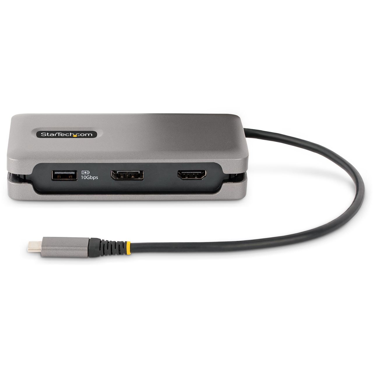 StarTech.com USB-C Multiport Adapter - 4K 60Hz USB C HDMI/DisplayPort Adapter, Reisedock - 3 Port USB C Hub - 100W PD - GbE - USB C Dockingstation/Laptop Dock - USB C auf HDMI - 30cm Integ. Kabel mit Kabelschlitz. Übertragungstechnik: Kabelgebunden, Hostschnittstelle: USB 3.2 Gen 2 (3.1 Gen 2) Type-C, USB-Stromversorgung bis zu: 100 W. Ethernet LAN Datentransferraten: 10,100,1000 Mbit/s. Produktfarbe: Grau, Datenübertragungsrate: 10 Gbit/s, HD-Typ: 4K Ultra HD. USB Kabellänge: 0,32 m. Unterstützt Windows-Betriebssysteme: Windows 10, Windows 10 Education, Windows 10 Education x64, Windows 10 Enterprise, Windows 10..., Unterstützt Mac-Betriebssysteme: Mac OS X 10.15 Catalina, Mac OS X 10.15.3 Catalina, Mac OS X 11.0 Big Sur, Mac OS X 12.0 Monterey,..., Unterstützte Linux-Betriebssysteme: Ubuntu 18.04 LTS, Ubuntu 20.04 LTS