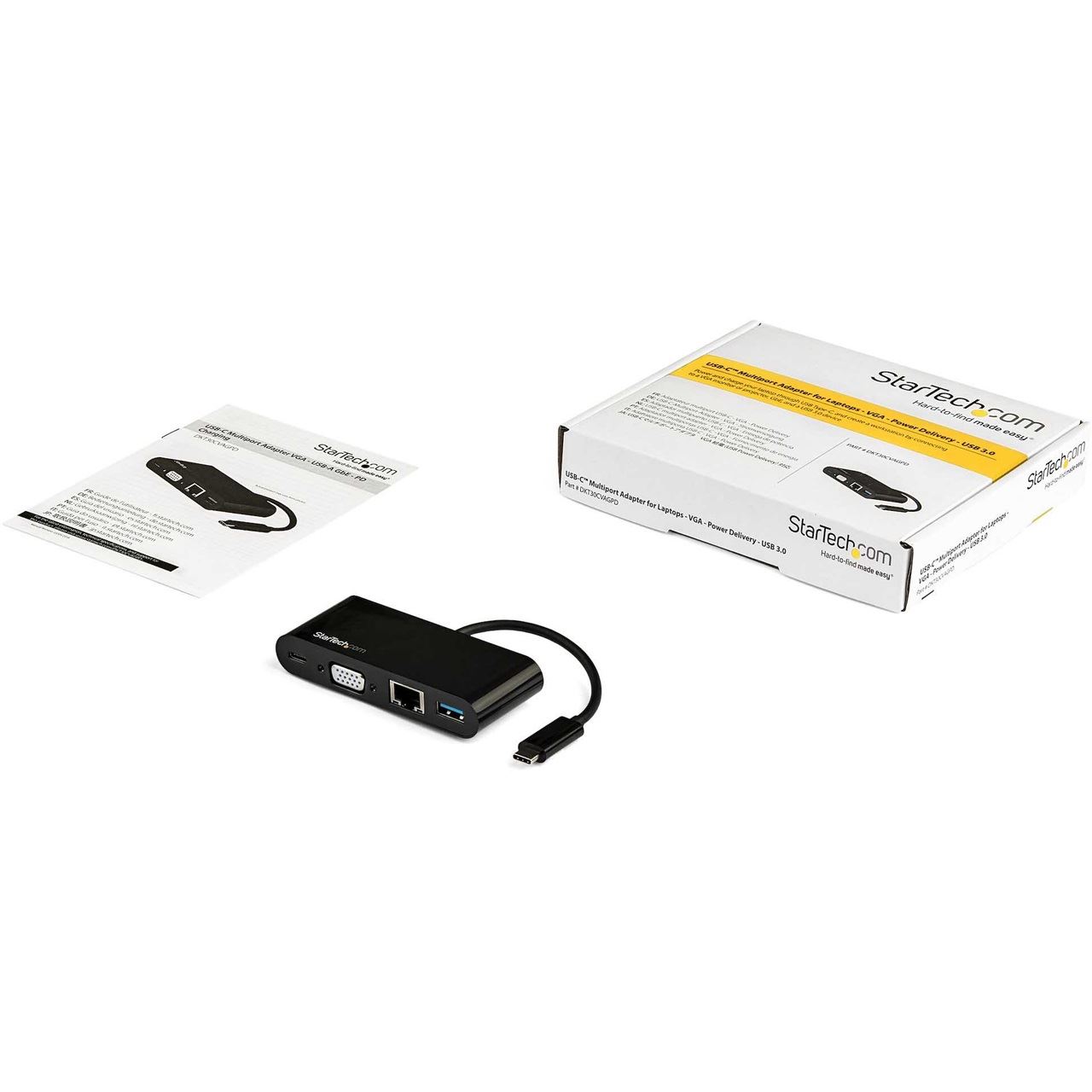 StarTech.com USB-C VGA Multiport Adapter - Power Delivery (60W) - USB 3.0 - Gigabit Ethernet. Übertragungstechnik: Kabelgebunden, Hostschnittstelle: USB 3.2 Gen 1 (3.1 Gen 1) Type-C, USB-Stromversorgung bis zu: 60 W. Ethernet LAN Datentransferraten: 10,100,1000 Mbit/s, Netzstandard: IEEE 802.3, IEEE 802.3ab, IEEE 802.3u. Produktfarbe: Schwarz, Datenübertragungsrate: 5 Gbit/s, Auflösung (maximal, digital): 1920 x 1200 Pixel. Energiequelle: USB. Unterstützt Windows-Betriebssysteme: Windows 10, Windows 10 Education, Windows 10 Education x64, Windows 10 Enterprise, Windows 10..., Unterstützt Mac-Betriebssysteme: Mac OS X 10.11 El Capitan, Mac OS X 10.12 Sierra, Mac OS X 10.13 High Sierra, Mac OS X 10.14..., Unterstützung anderer Betriebsysteme: ChromeOS