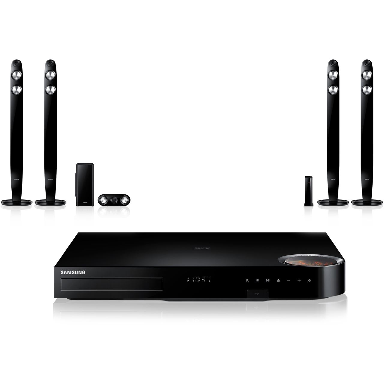Das Set besteht aus aus einem Lautsprechersystem, Blu-ray Player und AV-Receiver.