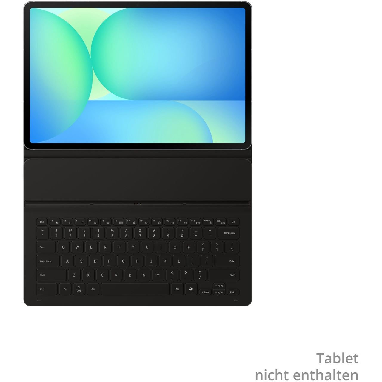 Samsung Book Cover Keyboard Slim für das Galaxy Tab S10 FE+. Tastaturaufbau: QWERTZ, Tastatursprache: Deutsch. Markenkompatibilität: Samsung, Kompatibilität: Galaxy Tab S10 FE+, Produktfarbe: Schwarz. Übertragungstechnik: Andocken, Geräteschnittstelle: Pogo Pin. Energiequelle: Dock. Breite: 196,7 mm, Tiefe: 13,1 mm, Höhe: 301,3 mm
