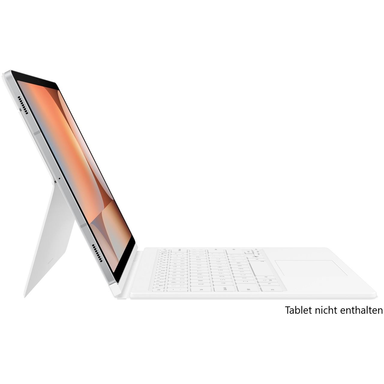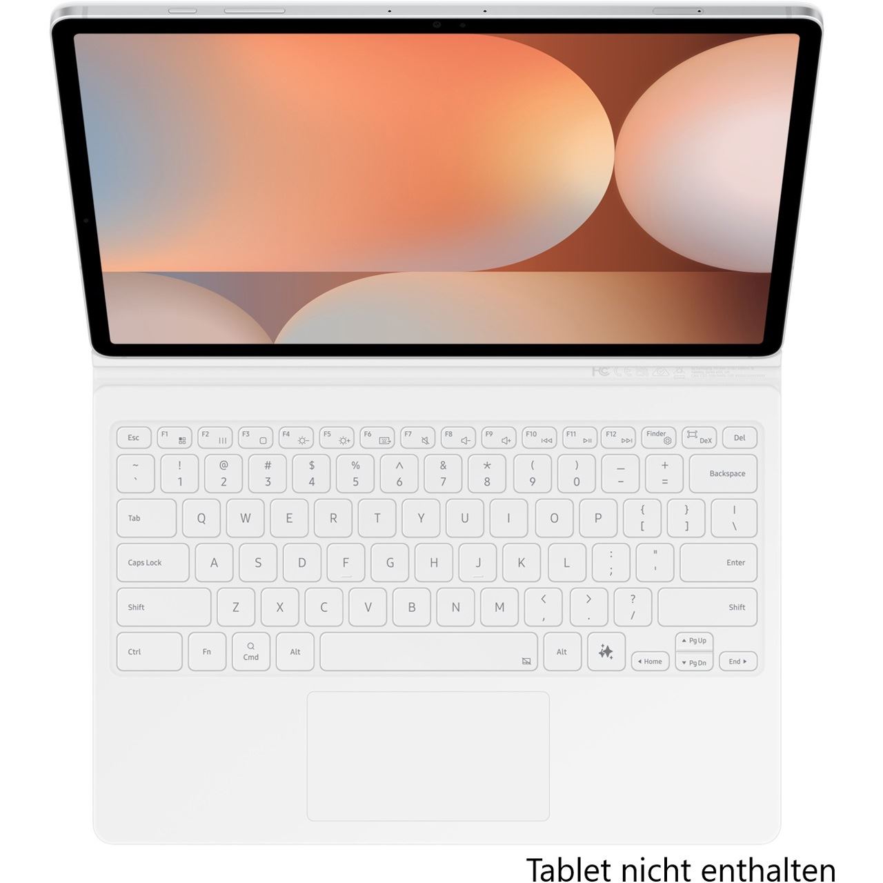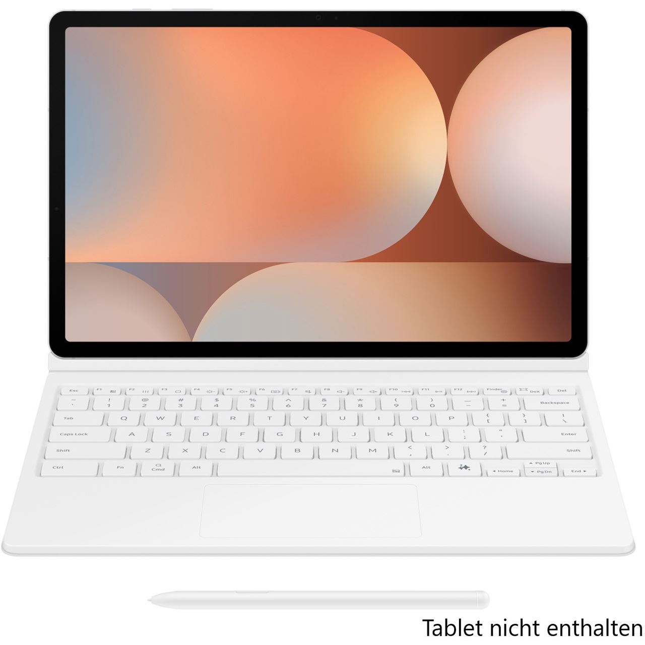 Samsung Book Cover Keyboard EF-DX825 für das Galaxy Tab S10+ | S9+ | S9 FE+. Tastaturaufbau: QWERTZ, Tastatursprache: Deutsch, Eingabegerät: Touchpad. Markenkompatibilität: Samsung, Kompatibilität: Galaxy Tab S10+ / S9+ / S9 FE+, Produktfarbe: Weiß. Übertragungstechnik: Andocken, Geräteschnittstelle: Pogo Pin. Energiequelle: Dock. Breite: 193,4 mm, Tiefe: 14,8 mm, Höhe: 286 mm