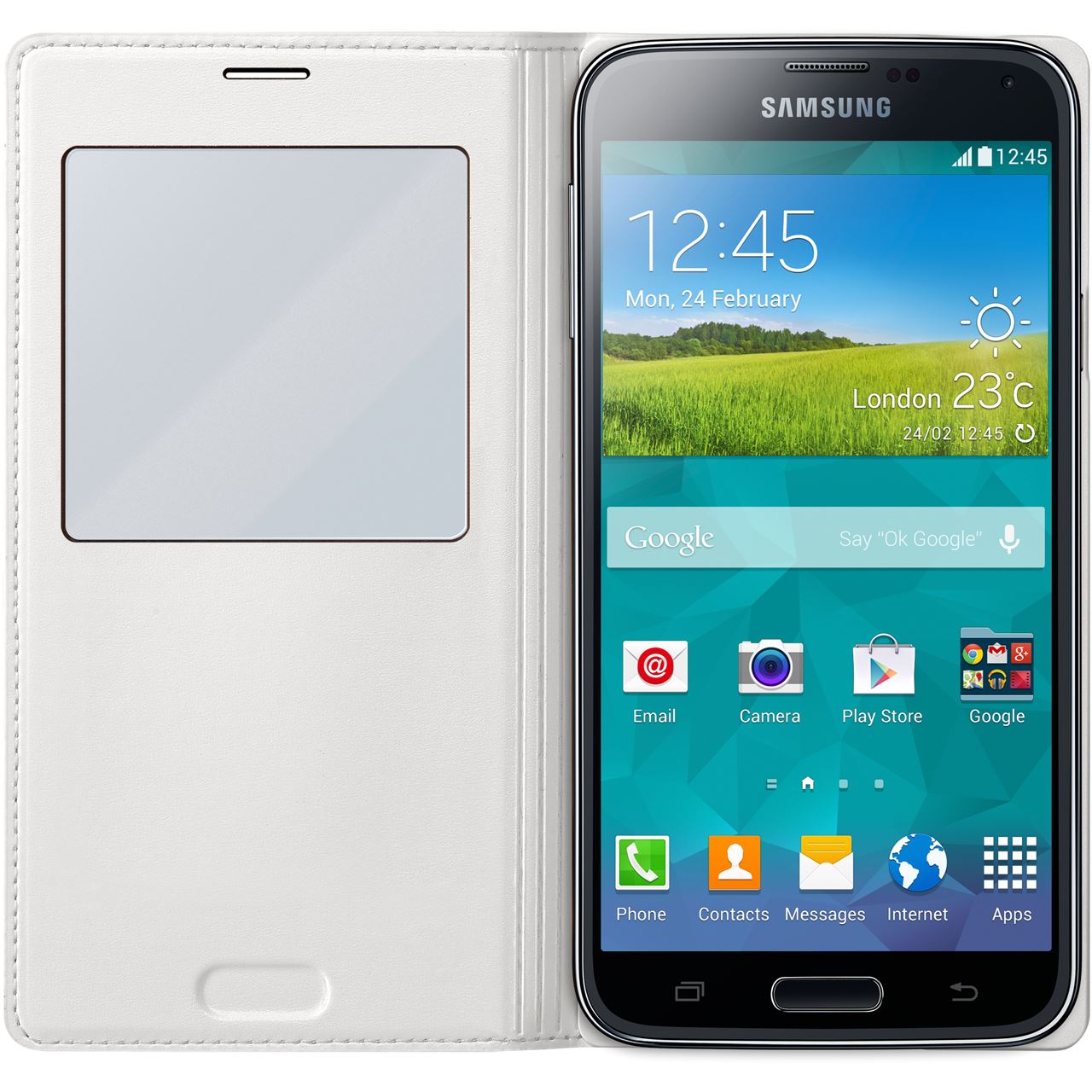 Samsung EF-CG900BW S View Kunstleder Flip-Cover für Samsung Galaxy S5 weiß