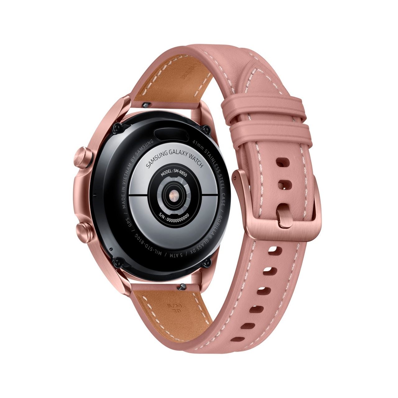 Das stilvolle Design der Galaxy Watch3 wird von einem Echtleder-Armband abgerundet bei dem das gealterte Leder für ein natürliches Aussehen sorgt. Drehst du die Smartwatch um, wird das verstärkte Leder sichtbar, mit dem du dich vor Verfärbungen schützen kannst.