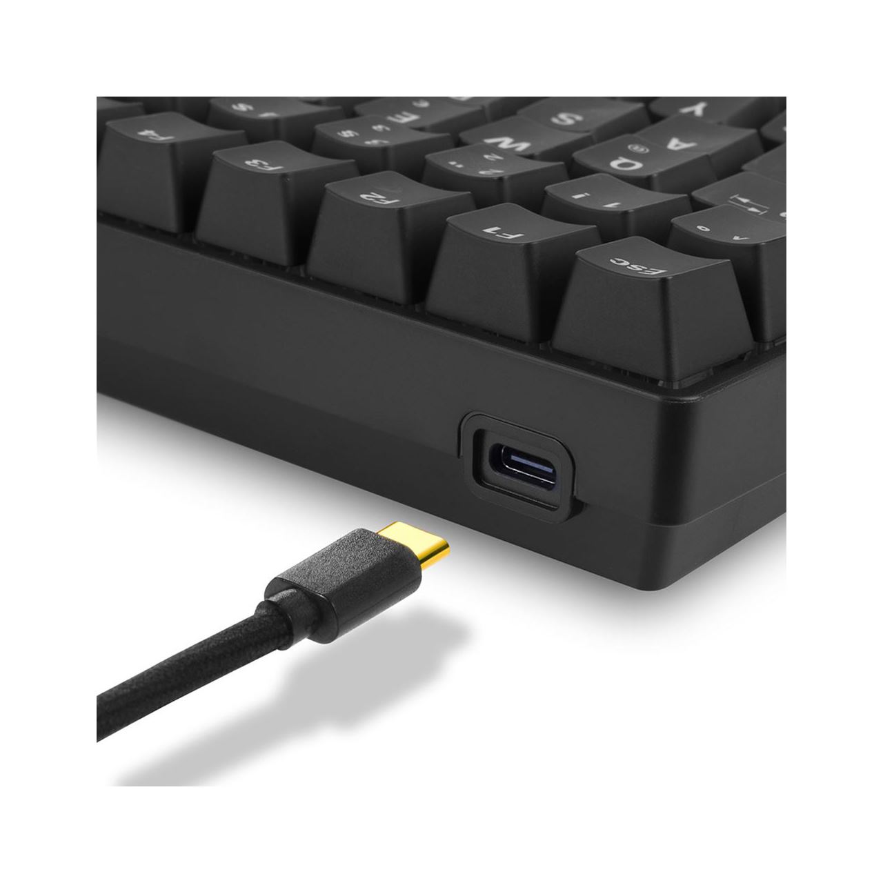 Mit einer Größe von 75 Prozent erreicht die SKILLER SGK50 S3 dank einer durchdachten Anordnung der 84 bzw. 85 Tasten die gleiche Funktionalität einer Drei-Block-Tastatur bei minimiertem Platzverbrauch. Neben den üblichen Tastenfunktionen befindet sich auch eine zusätzliche Sharkoon-Taste mit an Bord, über die der Webbrowser aufgerufen werden kann. Das starke Auftreten wird durch ein für die Serie typisches abnehmbares Spiralkabel mit USB-C- und USB-A-Anschluss abgerundet, das für eine jederzeit perfekte Optik weiter optimiert wurde.