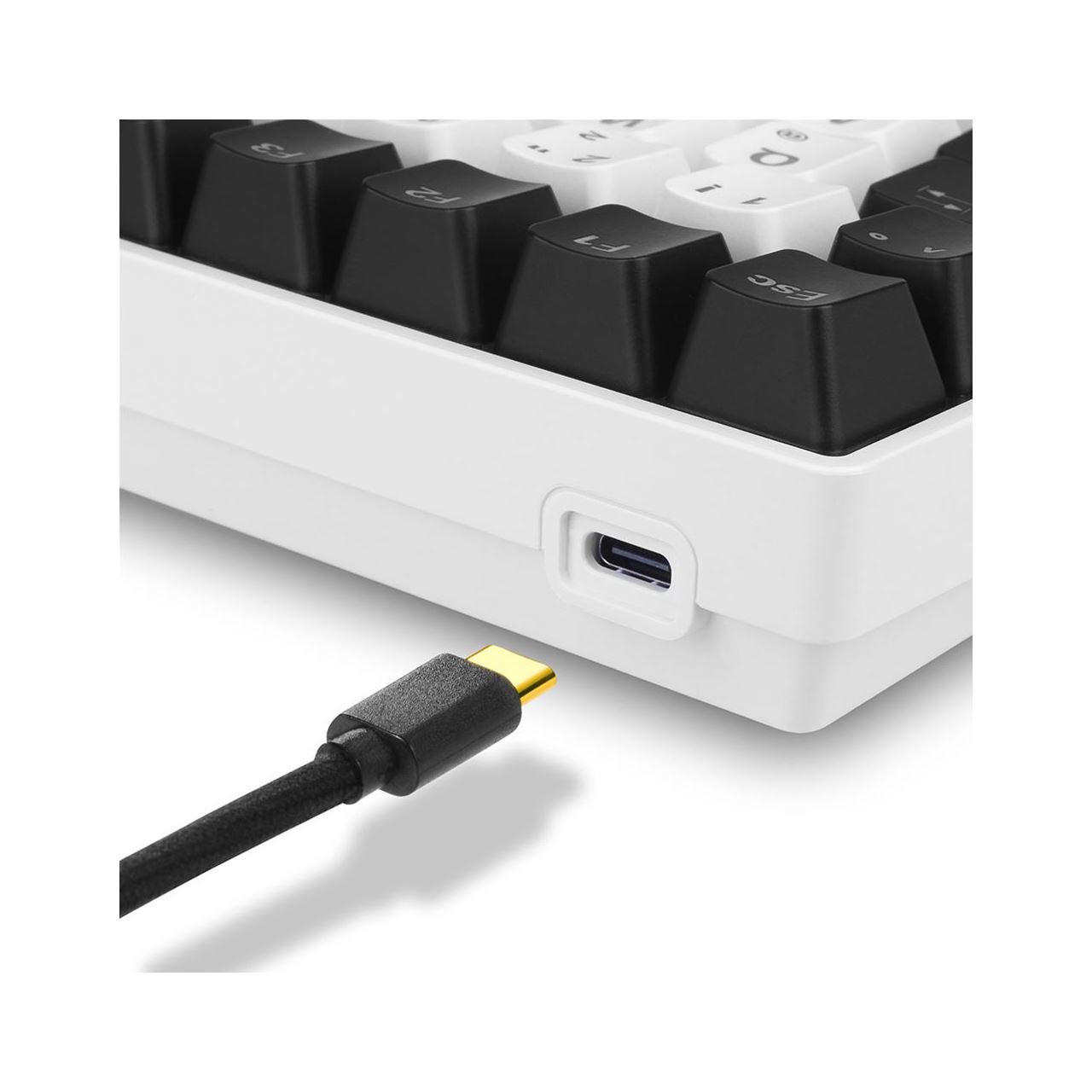 Mit einer Größe von 75 Prozent erreicht die SKILLER SGK50 S3 dank einer durchdachten Anordnung der 84 bzw. 85 Tasten die gleiche Funktionalität einer Drei-Block-Tastatur bei minimiertem Platzverbrauch. Neben den üblichen Tastenfunktionen befindet sich auch eine zusätzliche Sharkoon-Taste mit an Bord, über die der Webbrowser aufgerufen werden kann. Das starke Auftreten wird durch ein für die Serie typisches abnehmbares Spiralkabel mit USB-C- und USB-A-Anschluss abgerundet, das für eine jederzeit perfekte Optik weiter optimiert wurde.