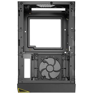 In der Oberseite ist bereits ein leiser 120-mm-Lüfter vorinstalliert, optional kann dort ein weiterer 120-mm-Lüfter eingebaut werden. Falls kein optisches Laufwerk eingebaut wird, bietet die Oberseite ferner Platz für einen 240-mm-Radiator zur optionalen Wasserkühlung des Systems. Vorbildlich: Alle Seitenteile bieten großzügige Ventilationsöffnungen und sind allesamt mit Staubfiltern ausgestattet. Ein klarer Vorteil für verbaute Grafikkarten, die über die seitlichen Öffnungen bestens mit Frischluft versorgt werden. Um die Belüftung noch weiter zu optimieren, kann auf der Rückseite ein 80-mm-Lüfter montiert werden.
