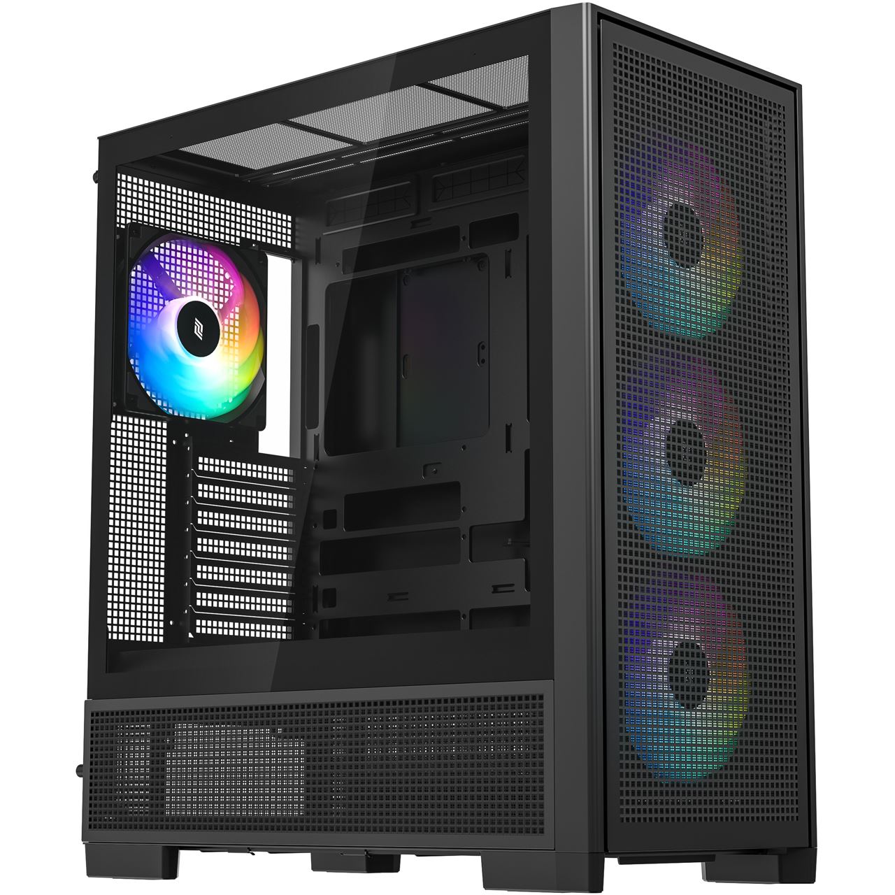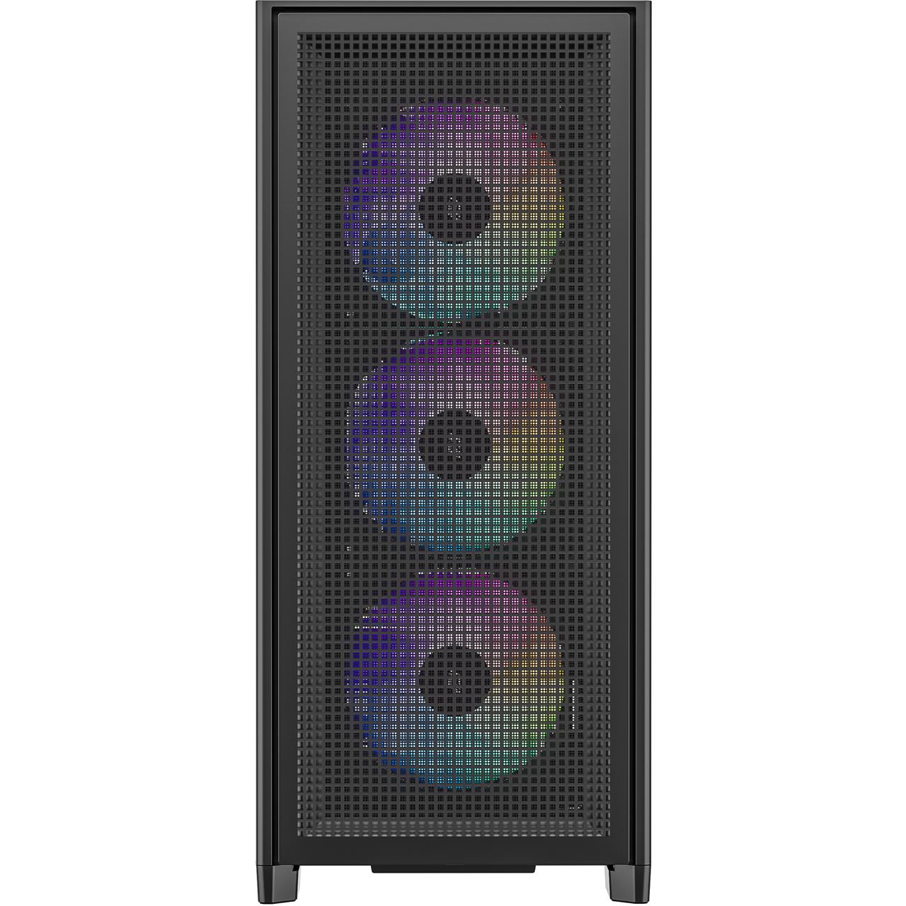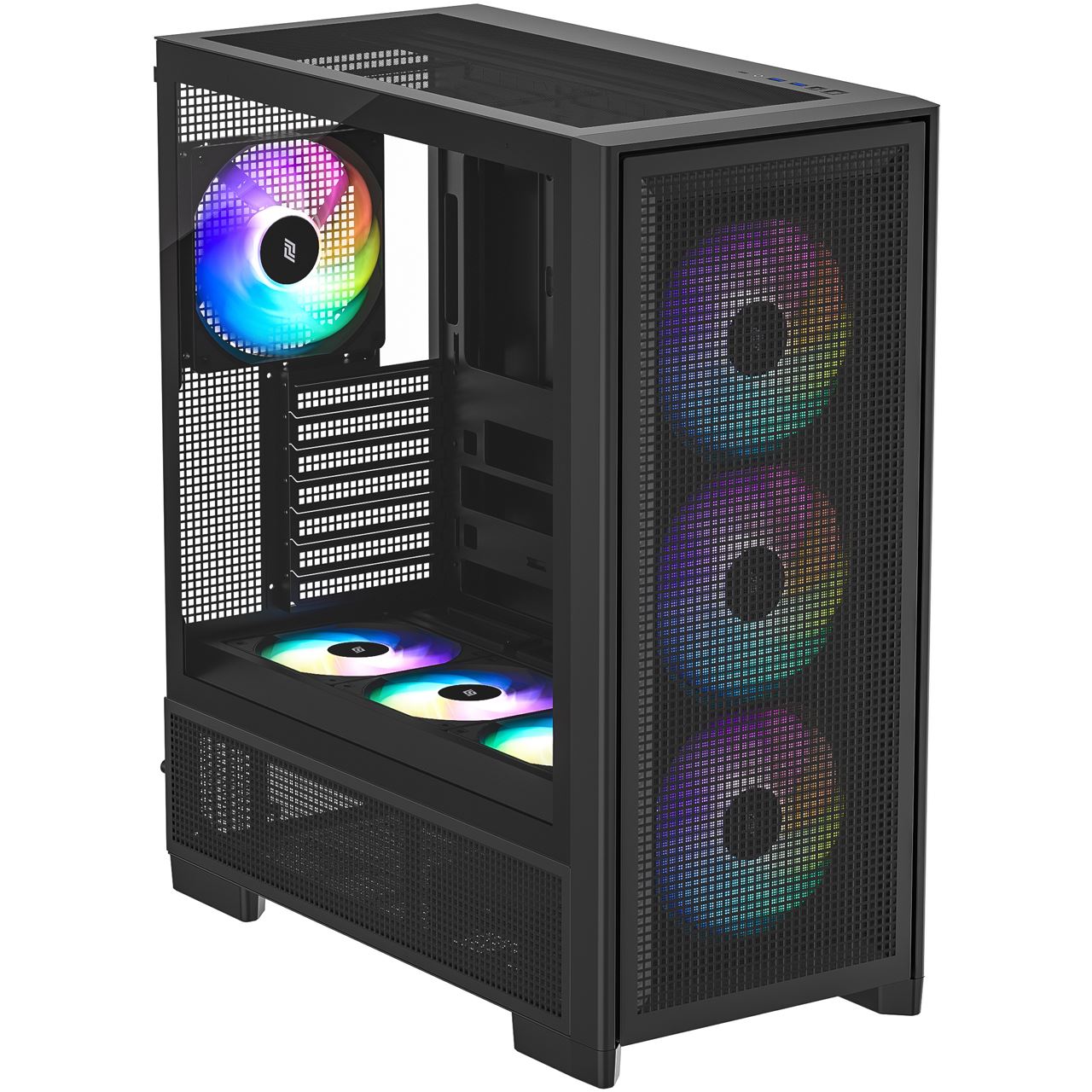 Im großzügig gestalteten Innenraum finden auch lange Grafikkarten, hohe CPU-Kühler und umfangreiche Kühlkonzepte problemlos Platz. Mehrere Montageoptionen ermöglichen den Einsatz großer Radiatoren und bieten damit maximale Flexibilität für individuelle Builds. Das Seitenteil aus gehärtetem Glas erlaubt einen freien Blick auf die verbaute Hardware und setzt diese zusammen mit der adressierbaren RGB-Beleuchtung stilvoll in Szene.
