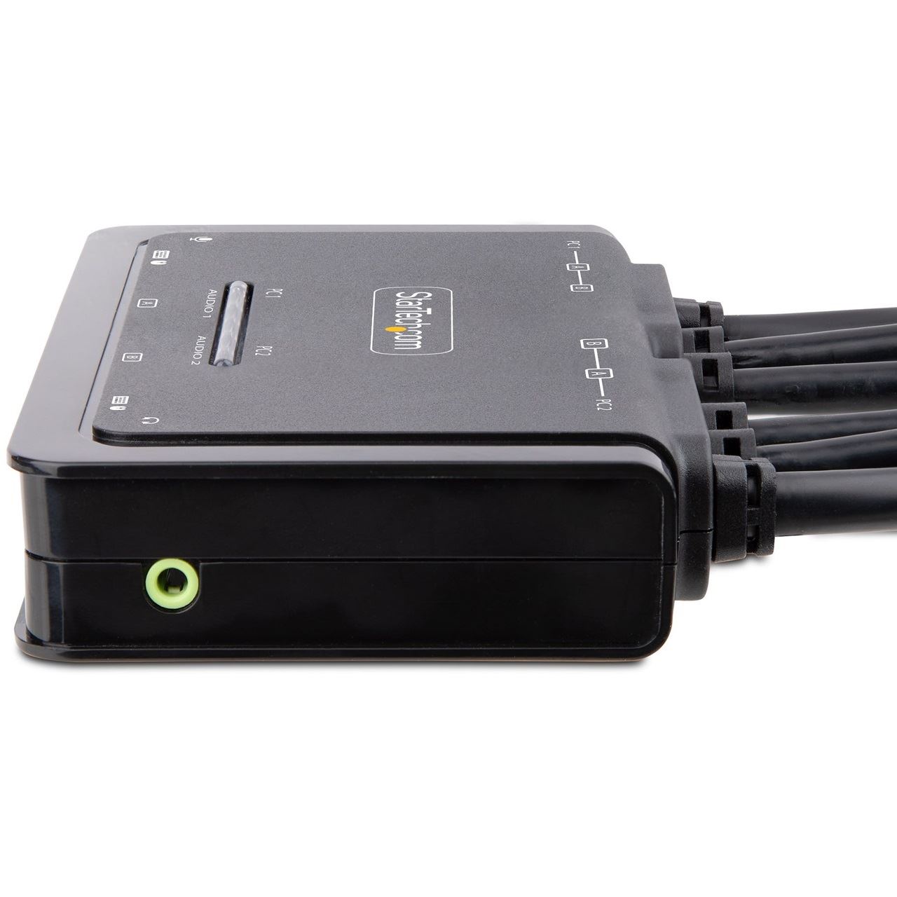 StarTech.com C2-DH46-UA2-CBL-KVM. Tastatur Porttyp: USB, Maus-Porttyp: USB, Video Porttyp: HDMI. HD-Typ: 4K Ultra HD, Maximale Auflösung: 4096 x 2160 Pixel, Videobandbreite: 60 Hz. Produktfarbe: Schwarz, Gehäusematerial: Acrylnitril-Butadien-Styrol (ABS), Kabellänge: 1,5 m. Energiequelle: USB. Unterstützt Windows-Betriebssysteme: Windows 10, Windows 10 Education, Windows 10 Education x64, Windows 10 Enterprise, Windows 10..., Unterstützt Mac-Betriebssysteme: Mac OS X 10.12 Sierra, Mac OS X 10.13 High Sierra, Mac OS X 10.14 Mojave, Mac OS X 10.15 Catalina,..., Unterstützung anderer Betriebsysteme: ChromeOS