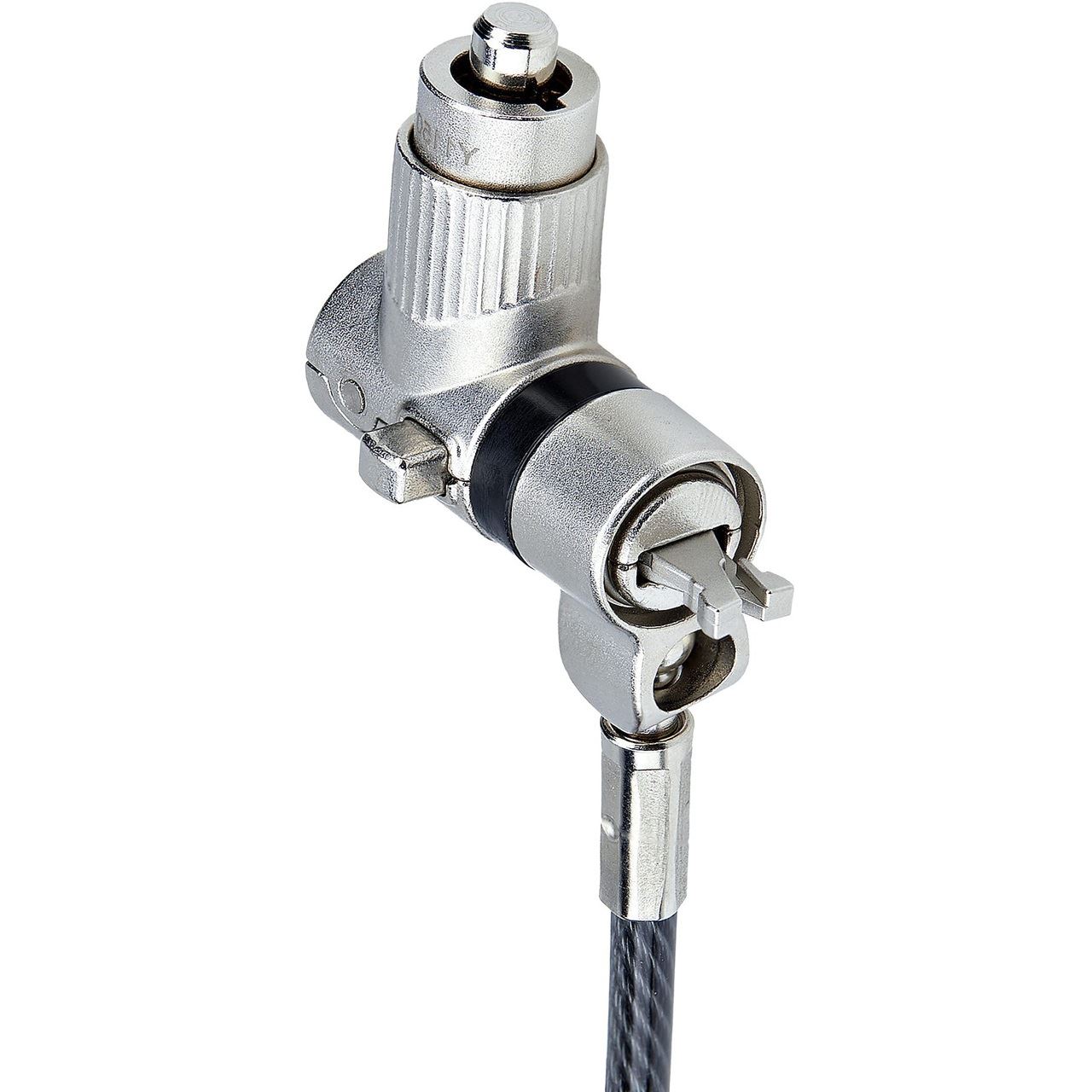 Der Durchmesser des Schlosskopfes beträgt 14 mm und verfügt über ein Kugelgelenk, das eine Drehung des Schlosskopfes um 360° und eine Schwenkung um 90° ermöglicht. Diese Flexibilität reduziert die Belastung des Notebooksteckplatzes und erhöht die Haltbarkeit und Benutzerfreundlichkeit.
