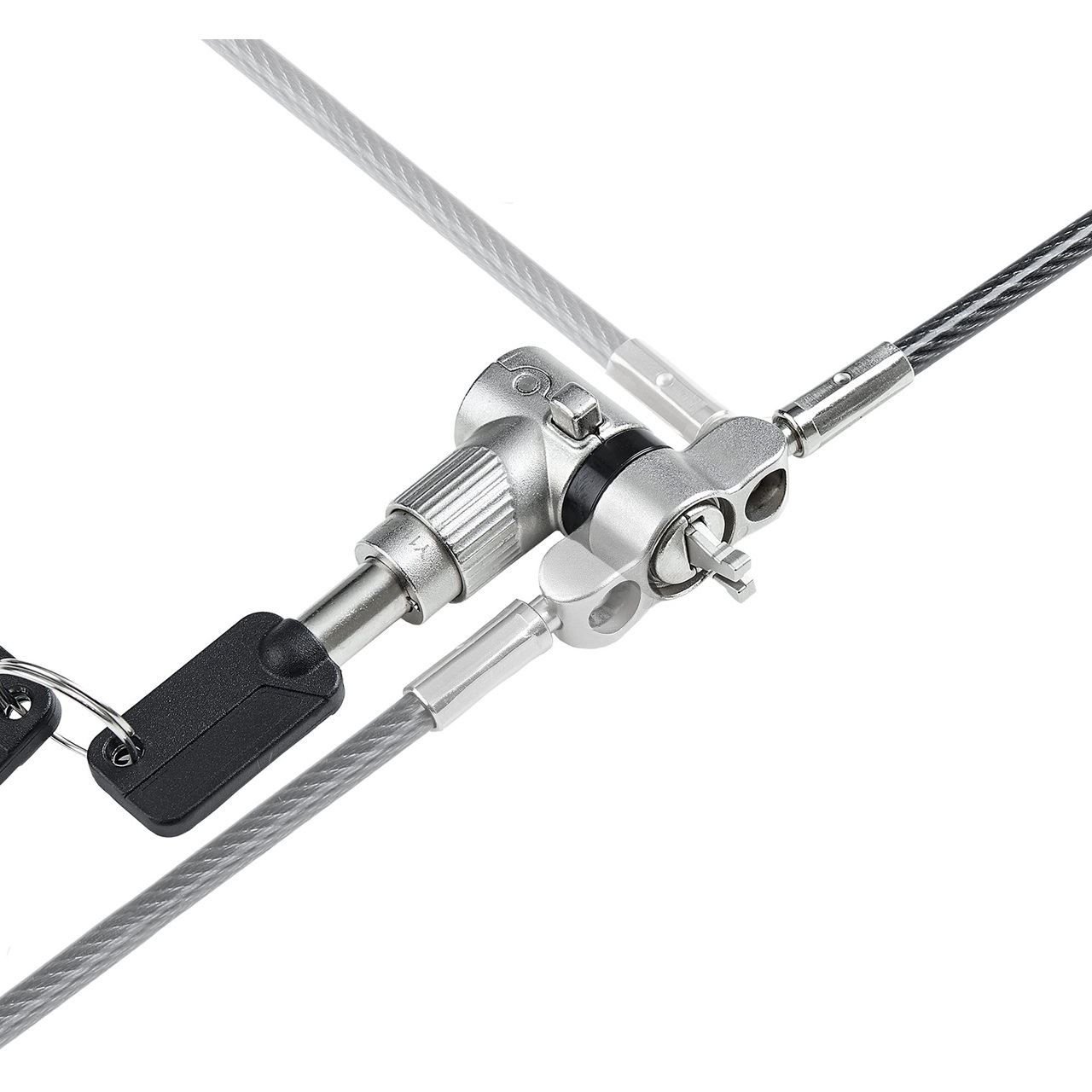 Das Schloss hat einen Generalschlüssel und enthält einen Satz von zwei Schlüsseln. Das Schloss hält einer Zugkraft von 91,2kg für den K-Slot, 98,8kg für den Nano und 61,2kg für den Noble Wedge stand. Damit ist sichergestellt, dass der Computer oder andere Geräte vor Diebstahl geschützt sind.