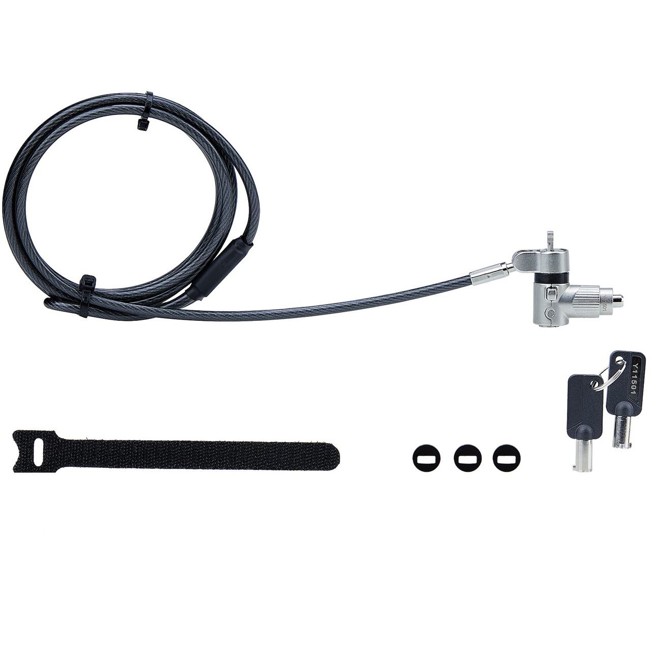 Sichern Sie einen Laptop, eine Dockingstation oder andere Peripheriegeräte mit diesem 3-in-1-Kabelschloss mit Generalschlüssel