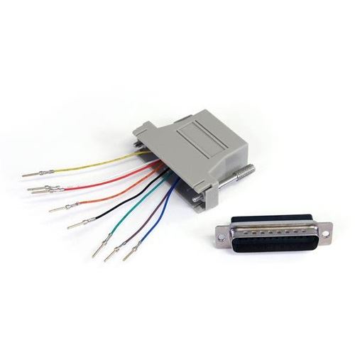 Dieser DB25M-zu-RJ45F-Adapter wird für modulare RS232-, RS422- und RS485-Verbindungen verwendet.