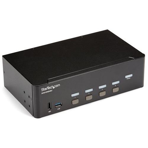 StarTech.com 4 Port HDMI KVM Switch - 4K 30Hz - zwei Displays. Tastatur Porttyp: USB, Maus-Porttyp: USB, Video Porttyp: HDMI. HD-Typ: 4K Ultra HD, Maximale Auflösung: 3840 x 2160 Pixel, Datenübertragungsrate (max): 5 Gbit/s. Produktfarbe: Schwarz, Gehäusematerial: Stahl, LED-Anzeigen: Leistung, Status. Energiequelle: AC, Eingangsspannung: 100 - 240 V, Eingangsstrom: 0.6 A. Konformitätsbescheinigungen: RoHS