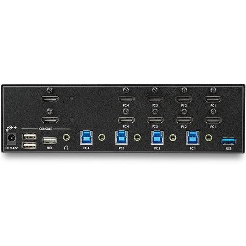 Dieser KVM-Switch mit 4 Ports umfasst zwei USB 3.0-Ports sowie vier HID-Tastatur- und -Maus-Ports, damit Sie Peripheriegeräte zwischen jedem Computer freigeben und so Kosten für separate Geräte vermeiden können. Der USB 3.0-Hub schaltet Ihre verbundenen Geräte automatisch zum ausgewählten Computer um - so müssen Sie sich nicht damit herumschlagen, Peripheriegeräte zu trennen und neu anzuschließen.