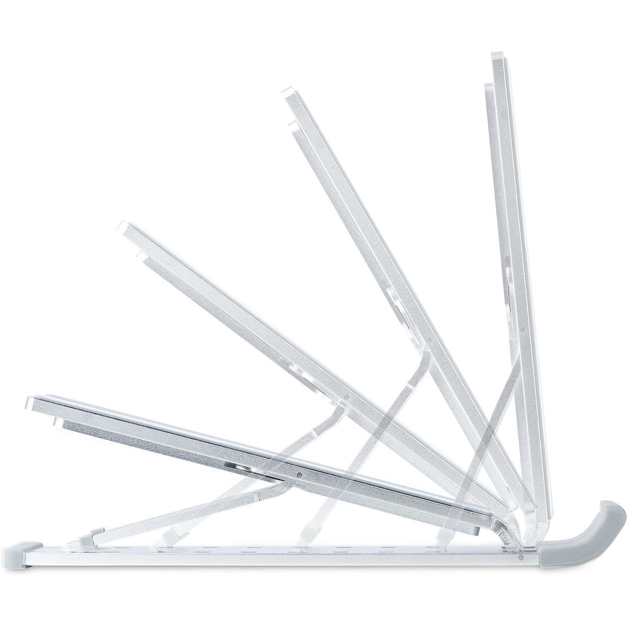 Der ultraleichte (329 g) faltbare Ständer ist ideal für Benutzer, die einen Ständer benötigen, der mobil ist und schnell eingesetzt werden kann. Transportieren Sie den vollständig faltbaren Ständer in der inklusiven Aufbewahrungstasche. Die Breite dieses Laptopständers ist verstellbar und reicht von 5,1 bis 18,2 cm, was die Kompatibilität mit mehreren Geräten gewährleistet. Im zusammengeklappten Zustand hat der Ständer die Maße 24,1 x 5,1 x 2,4 cm.