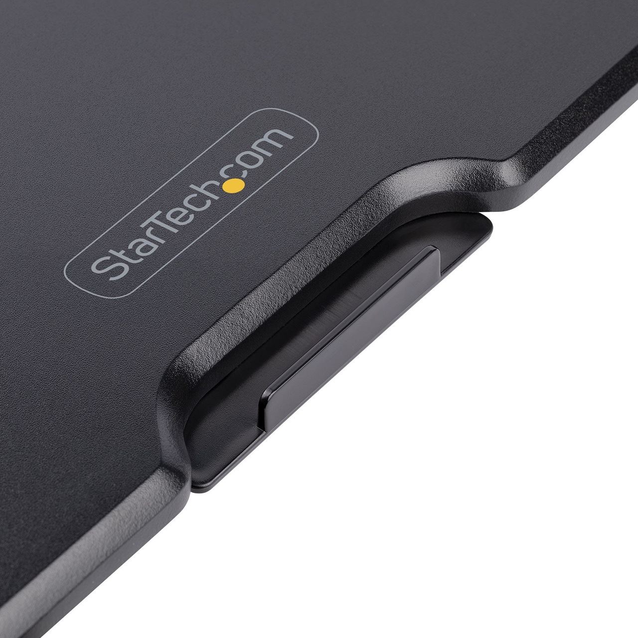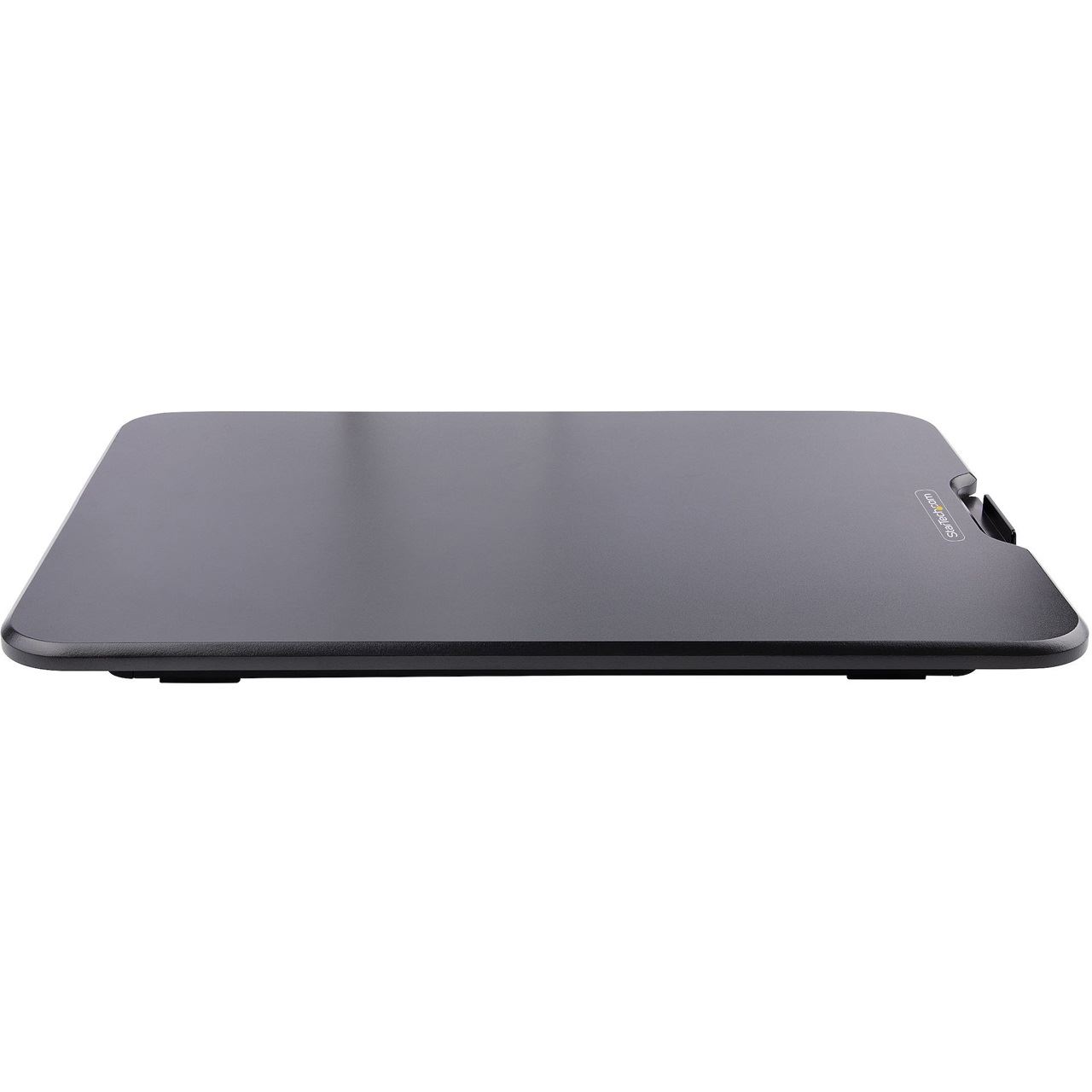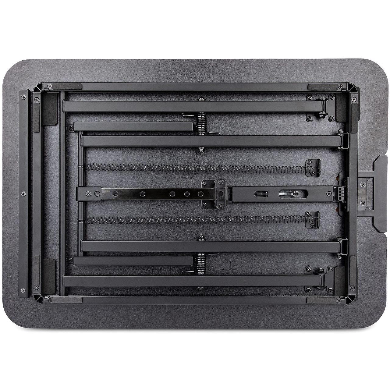 Die Plattform misst 67 x 47 cm und bietet eine ausreichende Arbeitsfläche und Gewichtskapazität (bis zu 8 kg) für einen Laptop, eine Tastatur und eine Maus.