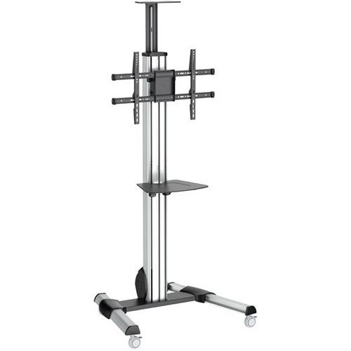 Mit diesem mobilen TV-Wagen können Sie einfach ein mobiles Medien-Center schaffen und so praktisch und kostengünstig AV-Geräte in verschiedenen Räumen verwenden. Das schlanke und robuste Design des TV-Wagens erlaubt die sichere Montage von TVs in Größen von 32 bis 75 Zoll (mit 40 kg Maximalgewicht) und bietet ein Multimediaregal für einen Computer, Medienplayer oder eine Tastatur. Außerdem verfügt der TV-Wagen über ein Kameraregal für Webkonferenzen.