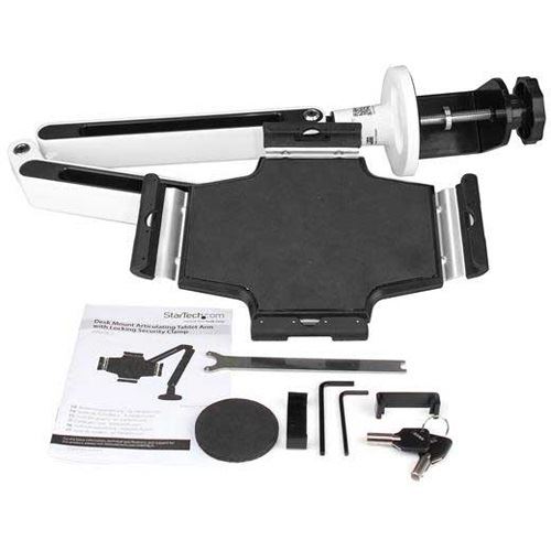 Mit dieser äußerst anpassbaren Tablet-Halterung integrieren Sie Ihr Tablet in Ihren Arbeitsplatz und erzielen so maximalen Komfort. Der Gelenkarm des Ständers ermöglicht Ihnen die einfache Positionierung Ihres Tablets in der perfekten Höhe und Tiefe für alle Anwendungen. Der Tablet-Ständer lässt sich um 360 Grad drehen und bietet für optimale Positionierung zudem Schwenk- und Neigefunktionalität. Darüber hinaus verfügt der Tablet-Ständer über eine abschließbare Sicherheitsklemme. Damit ist auch die Sicherheit Ihres Tablets gewährleistet.