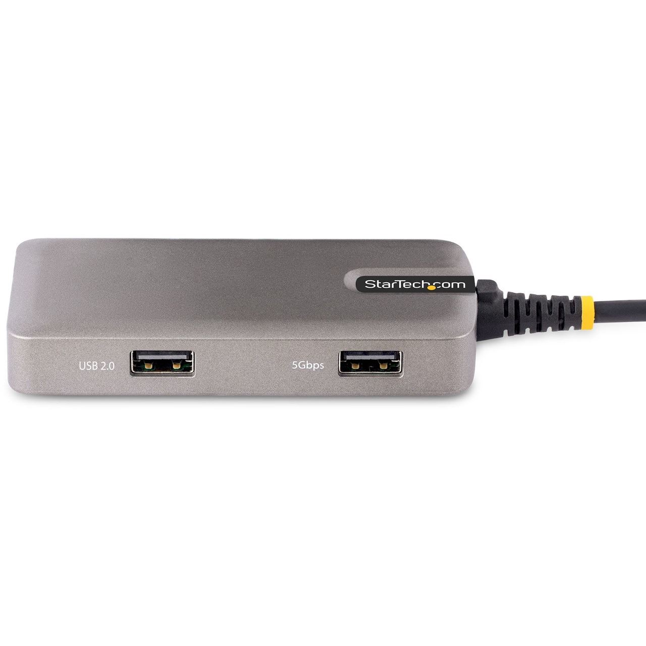 Der USB-C zu USB-A Hub verfügt über drei USB Typ-A Anschlüsse, darunter ein USB 3.2 Gen 1 (5 Gbit/s) Anschluss, und zwei USB 2.0 (480 Mbit/s) für den Anschluss von USB Geräten.