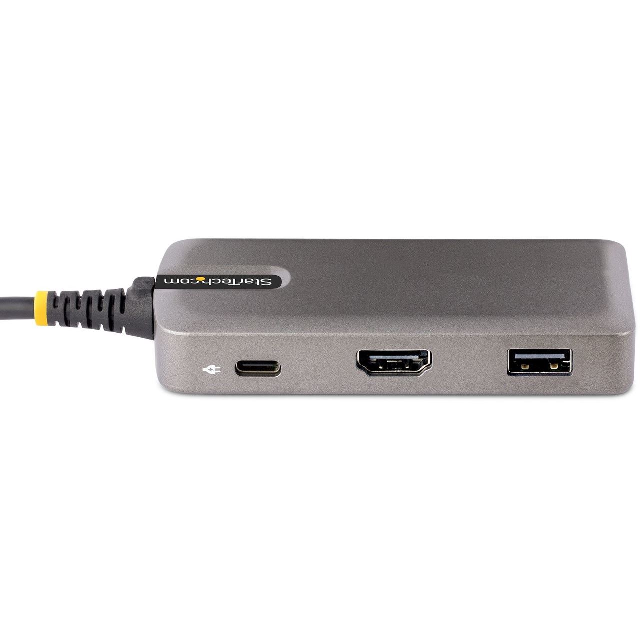 Dieser Works with Chromebook (WWCB) zertifizierte USB-C Multiport Adapter unterstützt bis zu 4K 60Hz HDMI 2.0b (HDR10) über DP Alt Mode. Das USB-C Dock verwandelt einen USB-C Laptop oder ein Tablet, wie z. B. ein Chromebook, Dell XPS oder ein MacBook, in eine Workstation. Der Adapter verbindet sich mit dem USB-C, USB4 oder Thunderbolt 3/4™ Anschluss eines Host Computers. Er hat einen HDMI Videoausgang, einen 3-Port USB Hub (1x USB 3.2 Gen 1 5Gbit/s, 2x USB 2.0 480Mbit/s), und Gigabit Ethernet. Schließen Sie ein USB-C Netzteil für Laptops an den dedizierten USB Power Delivery (PD) 3.0 Anschluss an, der sich am Multiport Adapter befindet, um den Laptop zu laden. Der Multiport Adapter hat ein extra langes, integriertes 30 cm langes USB-C Host-Kabel.