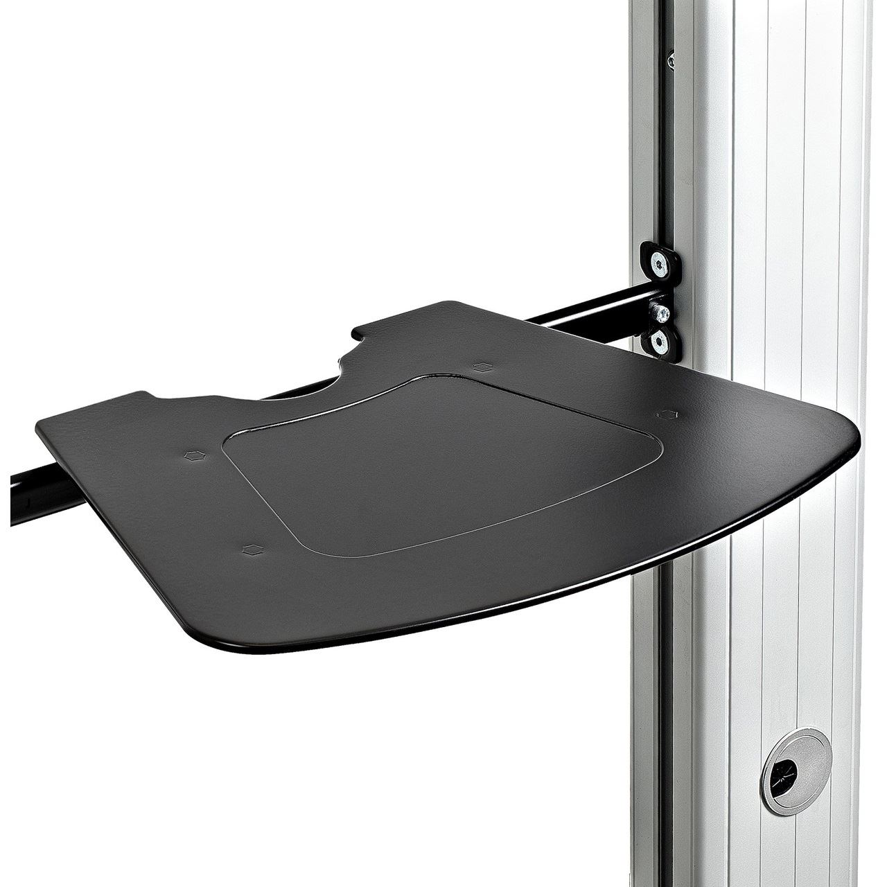 Dieser mobile Universalwagen bietet zwei unabhängig voneinander verstellbare Geräteablagen (Webcam-Ablage und Geräteablage), die jeweils eine Unterstützung von bis zu 5 kg bieten. Die Webcam-Ablage kann auf bis zu 2,37 m angehoben werden, während die Geräteablage auf bis zu 0,90 m vom Boden angehoben werden kann.