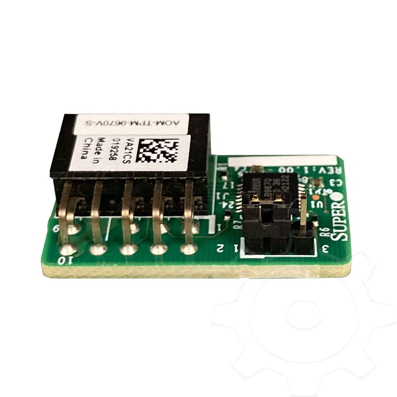 Supermicro AOM-TPM-9670V-S-O. Hostschnittstelle: SPI. Breite: 26,1 mm, Tiefe: 14,6 mm, Höhe: 13,1 mm