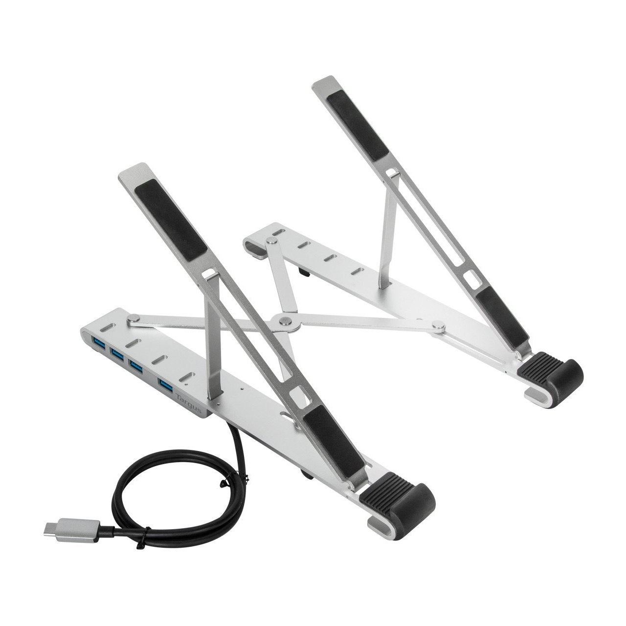 Mit seinem integrierten Hub fügt dieser Ständer 4 USB-A-Anschlüsse hinzu, so dass Sie ganz einfach die neueste Tastatur, ein externes Laufwerk oder anderes Zubehör anschließen können, um Ihren Arbeitsplatz individuell zu gestalten und gleichzeitig Kabel zu vermeiden.