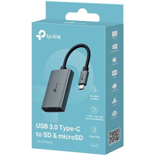 TP-Link UA440C. Kompatible Speicherkarten: MicroSD (TransFlash), SD, Produktfarbe: Grau, Gehäusematerial: Aluminium. Schnittstelle: USB 3.2 Gen 1 (3.1 Gen 1) Type-C. Breite: 544 mm, Tiefe: 342 mm, Höhe: 115 mm