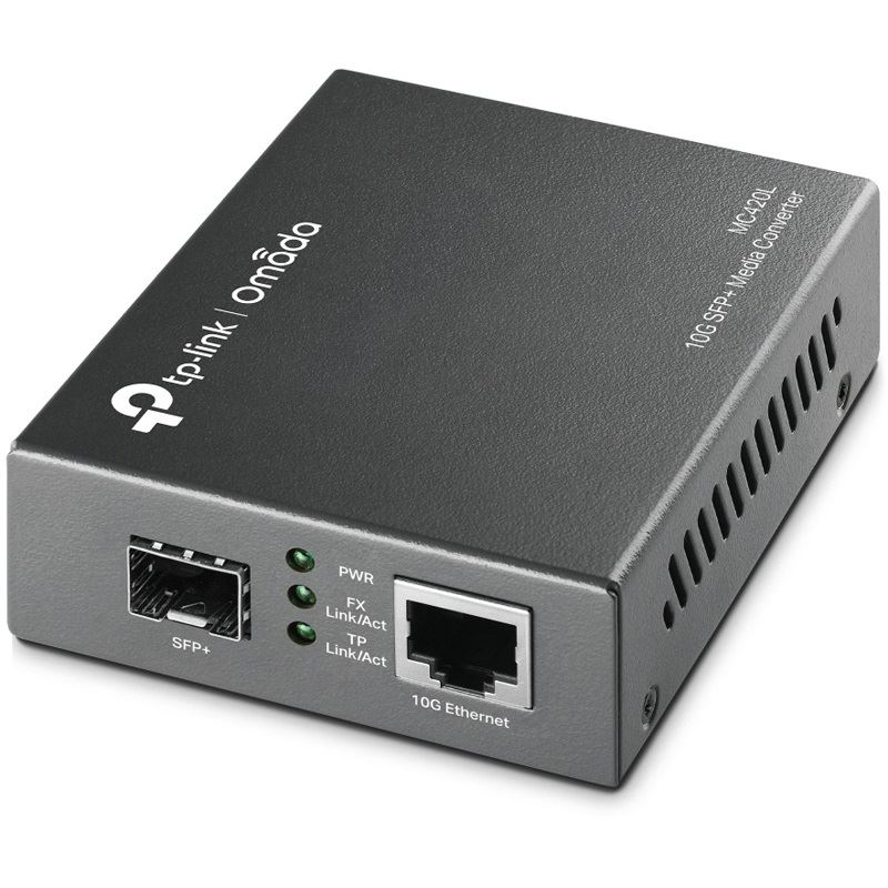 TP-Link Omada MC420L. Maximale Datenübertragungsrate: 10000 Mbit/s, Netzstandard: IEEE 802.3ab, IEEE 802.3ae, IEEE 802.3an, IEEE 802.3aq, IEEE 802.3x, IEEE 802.3z, Kupfer Ethernet Verkabelungstechnologie: 2.5GBASE-T, 10GBASE-T, 1000BASE-T. Maximal mögliche Übertragungsstrecke: 100 m, Kabel mode struktur: Multi-Modus, Einzelmodus. LED-Anzeigen: Aktivität, Link, Leistung, Produktfarbe: Schwarz. Optischer Kabelverbinder: SFP+, Übertragungstechnik: Kabelgebunden. Stromverbrauch (max.): 4,12 W