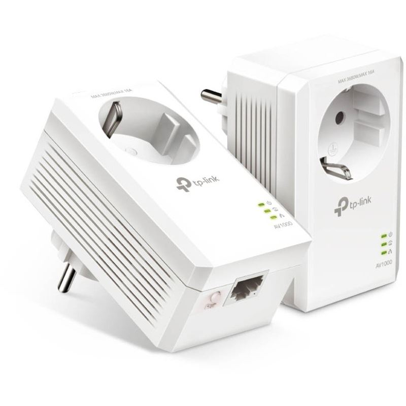 TP-Link AV1000-Gigabit-Powerline-Adapter KIT mit Steckdose. Maximale Datenübertragungsrate: 1000 Mbit/s, Netzstandard: IEEE 1901, IEEE 802.3, IEEE 802.3ab, IEEE 802.3u, Stecker: Type E/F. Stromverbrauch (Standardbetrieb): 2,3 W, Stromverbrauch (Standby): 0,5 W, AC Eingangsspannung: 220 V. Produktfarbe: Weiß, Zertifizierung: CE, RoHS. Breite: 58 mm, Tiefe: 42 mm, Höhe: 95 mm. Verpackungsbreite: 190 mm, Verpackungstiefe: 136 mm, Verpackungshöhe: 100 mm
