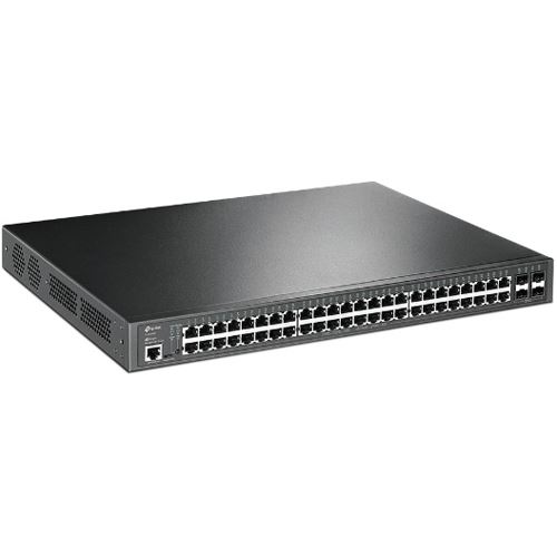 TP-Link JetStream 52-Port Gigabit L2+ Managed Switch mit 48-Port PoE+. Switch-Typ: Managed, Switch-Ebene: L2/L3. Basic Switching RJ-45 Ethernet Ports-Typ: Gigabit Ethernet (10/100/1000), Anzahl der basisschaltenden RJ-45 Ethernet Ports: 48, Konsolen-Port: RJ-45/micro-USB. MAC-Adressentabelle: 16000 Eintragungen, Routing-/Switching-Kapazität: 104 Gbit/s. Netzstandard: IEEE 802.1D, IEEE 802.1p, IEEE 802.1s, IEEE 802.1w, IEEE 802.3ad, IEEE 802.3x. Netzstecker: AC-Eingangsbuchse. Power over Ethernet (PoE). Rack-Einbau, Formfaktor: 1U