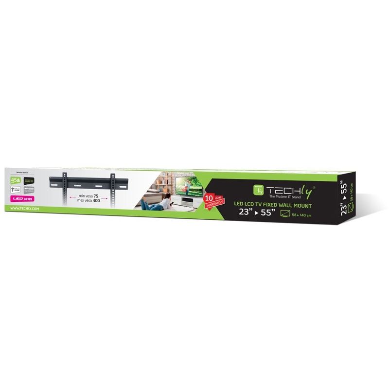 Techly ICA-PLB-114M. Höchstgewichtskapazität: 45 kg, Minimum Bildschirmgröße: 58,4 cm (23"), Maximale Bildschirmgröße: 139,7 cm (55"), Minimale VESA-Halterung: 75 x 75 mm, Maximale VESA-Halterung: 400 x 400 mm. Abstand zur Wand (max): 2,3 cm. Produktfarbe: Schwarz