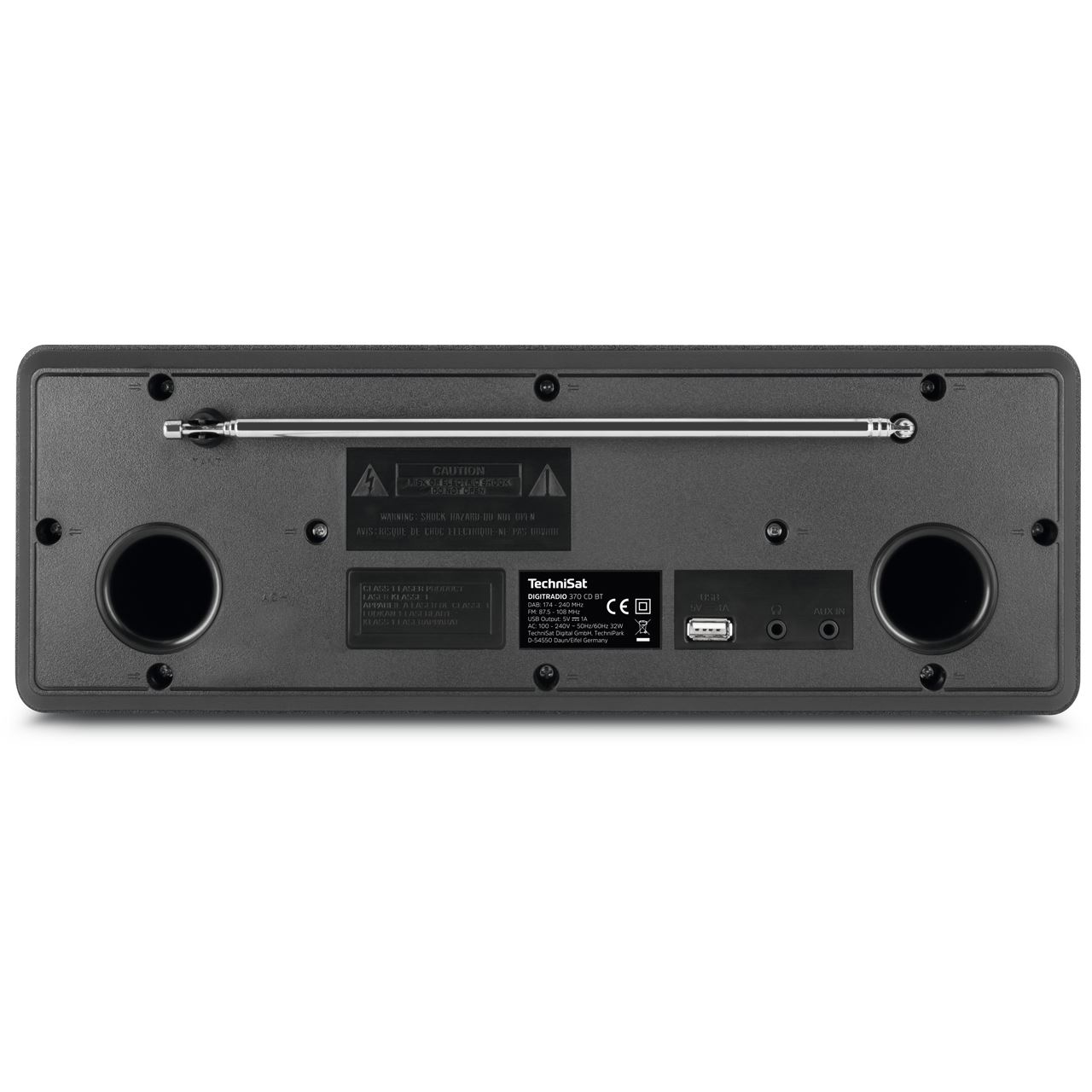 TechniSat DIGITRADIO 370 CD BT. Radiotyp: Persönlich, Tunertyp: Analog & Digital, Unterstützte Bänder: DAB+, FM. RMS-Leistung: 10 W. Display-Typ: TFT, Bildschirmdiagonale: 6,1 cm (2.4"). Produktfarbe: Schwarz, Lautstärkeregler: Drehregler, Menüsprachen: Deutsch, Englisch, Französisch, Italienisch. Energiequelle: AC, AC Eingangsspannung: 230 V, AC Eingangsfrequenz: 50 Hz