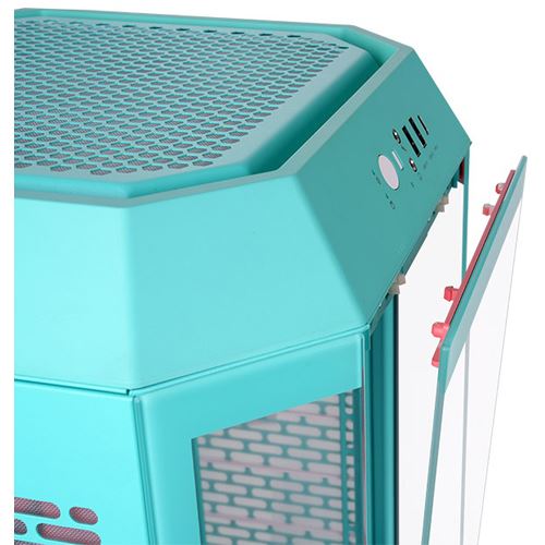 Thermaltake The Tower 250. Formfaktor: Mini Tower, Typ: PC, Produktfarbe: Mintfarbe, Rot. Display-Typ: LCD, Bildschirmdiagonale: 9,91 cm (3.9"), Display-Auflösung: 128 x 480 Pixel. Installierte Lüfter (Vorderseite): 2x 120 mm, Durchmesser unterstützte Vorderseitenlüfter: 120 mm, Durchmesser unterstützte Seitenlüfter: 120,140 mm. Unterstützte Hard-Disk Drive Größen: 2.5,3.5". Breite: 300 mm, Tiefe: 281 mm, Höhe: 506 mm