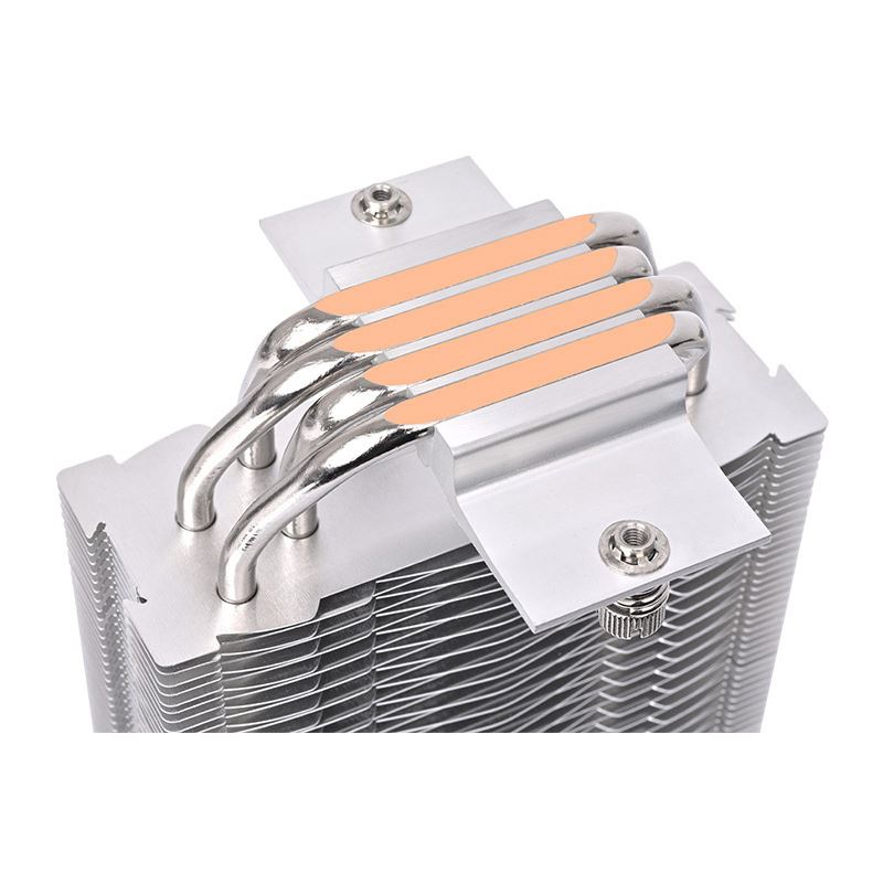 Der UX400 ARGB Sync verfügt über vier U-förmige Kupfer-Heatpipes mit Ø6 mm, die in direktem Kontakt mit der CPU für eine schnelle und zuverlässige Wärmeübertragung sorgen. Sein Single-Tower-Design mit hochwertigen Aluminiumlamellen sorgt für eine optimale Wärmeableitung und hält Ihr System kühl und stabil.