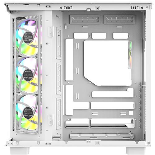 Thermaltake View 380 XL WS ARGB Snow. Formfaktor: Midi Tower, Typ: PC, Produktfarbe: Weiß. Unterstützte Stromversorgungs-Formfaktoren: PS2. Installierte Lüfter seitlich: 3x 120 mm, Durchmesser unterstützte Seitenlüfter: 120 mm, Installierte Lüfter hinten: 1x 120 mm. Unterstützte Hard-Disk Drive Größen: 3.5", SSD-Formfaktor: 2.5". Breite: 288 mm, Tiefe: 473 mm, Höhe: 471 mm