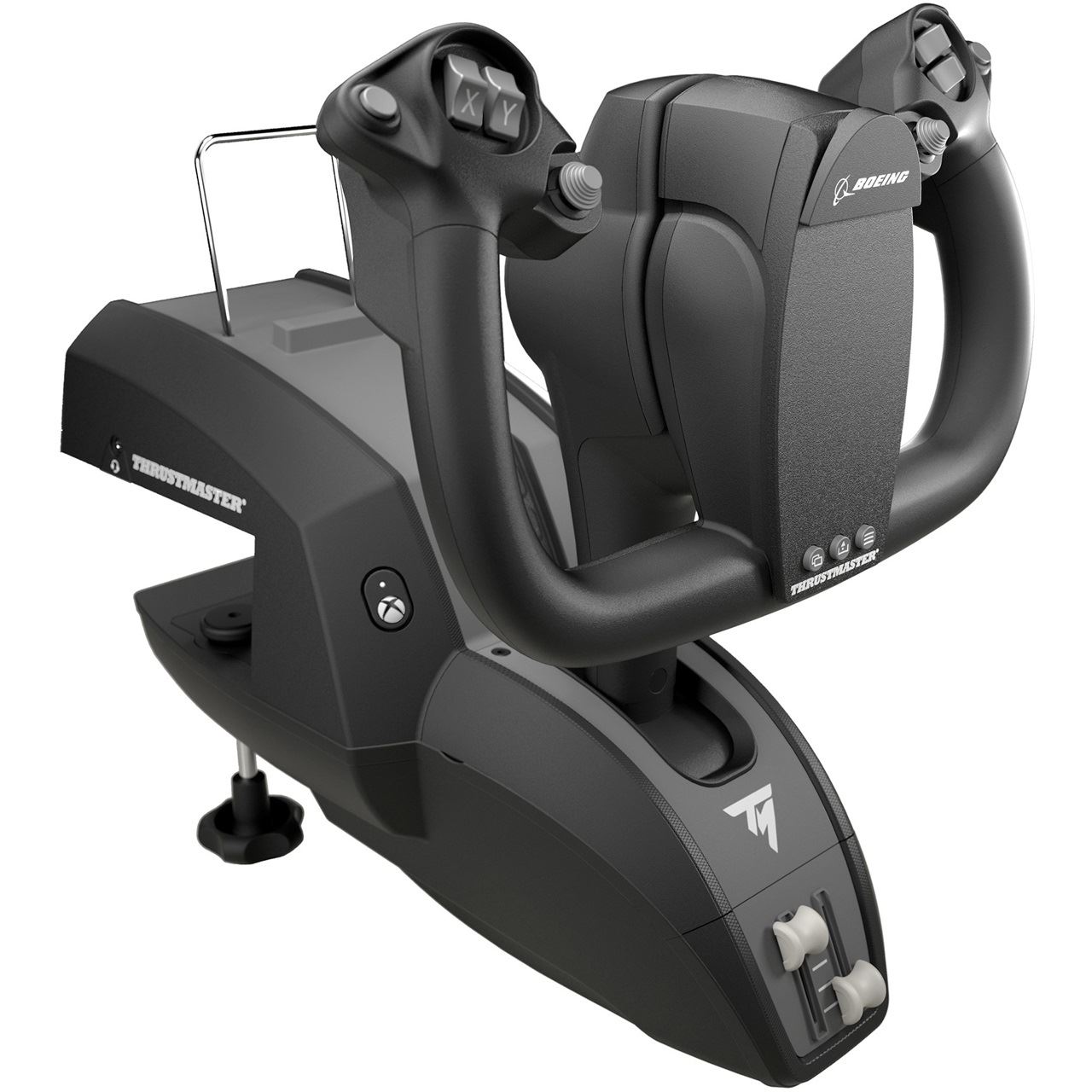 Thrustmaster TCA Yoke Pack Boeing Edition. Gerätetyp: Kampfstab, Gamingplattformen unterstützt: PC, Xbox, Xbox One, Xbox One S, Xbox One X, Xbox Series S, Xbox Series X. Übertragungstechnik: Kabelgebunden, Geräteschnittstelle: USB. Produktfarbe: Schwarz, Grau. Energiequelle: Kabel. Breite: 300 mm, Tiefe: 390 mm, Höhe: 380 mm