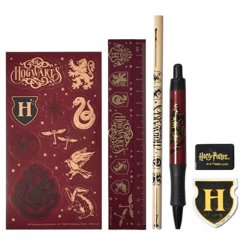 Entdecke das ultimative Harry Potter Schreib Set, das jeden Fan der Zauberwelt begeistern wird. Dieses Set ist nicht nur ein Muss für jeden Anhänger von Hogwarts, sondern auch ein Stück Magie, das du in deinen Alltag einbringen kannst. -Zauberspruch-Lineal: Dieses 15 cm Lineal ist mehr als nur ein gewöhnliches Lineal; es ist ein magisches Werkzeug, das deine Schreibfähigkeiten auf das Niveau eines Hogwarts-Absolventen heben könnte. -Tintenfass-Kugelschreiber: Fühle dich wie ein echter Zauberlehrling mit diesem Kugelschreiber, der so gestaltet ist, als würde er Tinte aus einem antiken Tintenfass ziehen. -Aufkleber aus der Winkelgasse: Mit diesen zehn Aufklebern kannst du deine Sachen mit der Essenz der berühmtesten magischen Einkaufsstraße verzieren. -Bleistift aus dem Verbotenen Wald: Ein Bleistift, so widerstandsfähig, dass er sogar den Abenteuern im Verbotenen Wald trotzen kann. -Radiergummi von Gringotts: Lass Fehler verschwinden wie Galleonen in den Tiefen der Gringotts-Tresore. -Anspitzer aus Hogsmeade: Schärfe deine Stifte zu perfekter Präzision, bereit für jede Prüfung oder jedes Abenteuer. Mit diesem Harry Potter Fanartikel kannst du deine Liebe zur Zauberwelt ausdrücken und gleichzeitig praktische Schreibwaren nutzen. Ob für dein Harry Potter Tagebuch, deinen Harry Potter Notizblock oder einfach zum Sammeln – dieses Briefset ist die perfekte Ergänzung für deine Sammlung von Harry Potter Merch. Tauche ein in die Hogwarts Legacy mit diesem zauberhaften Schreibwarenset.