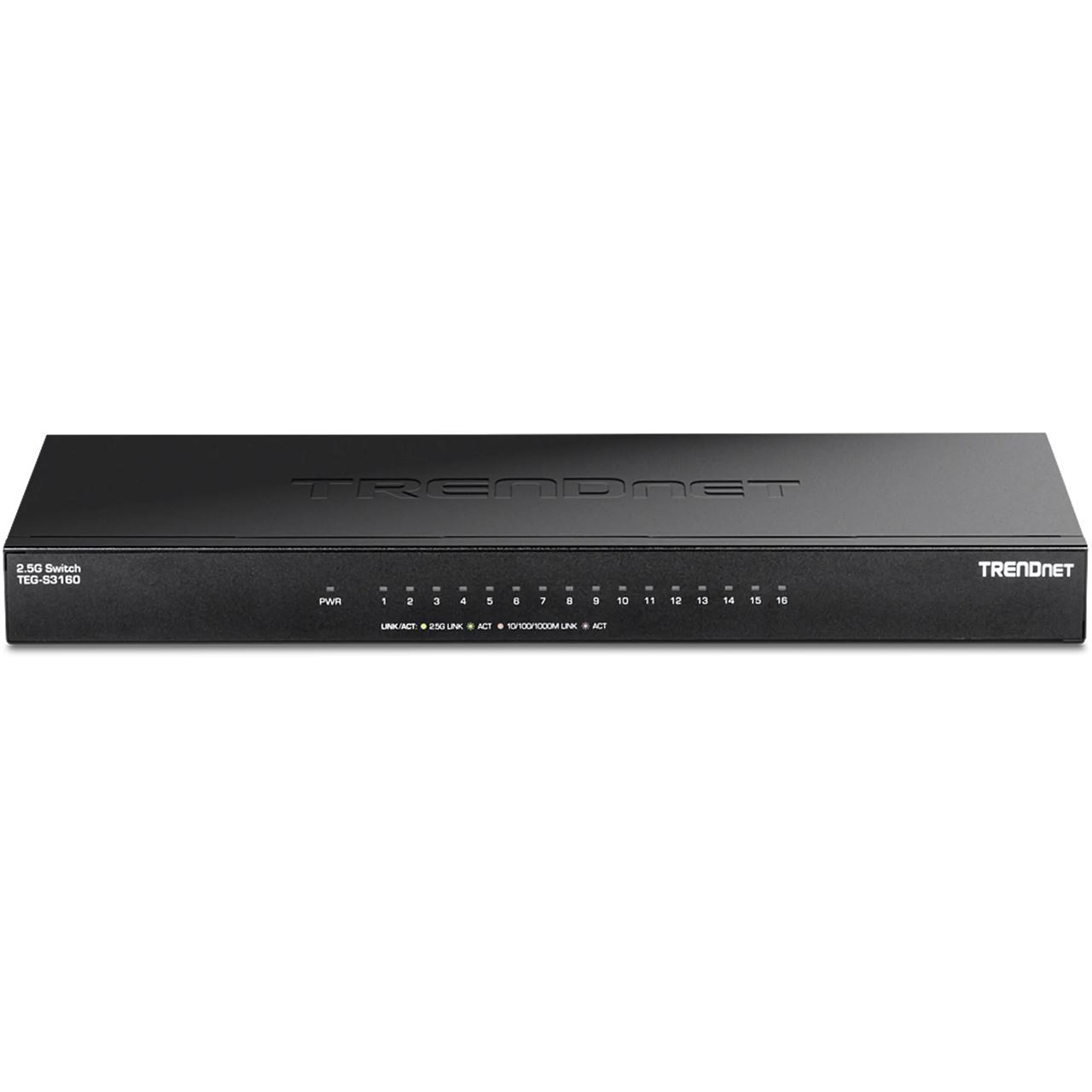 Trendnet TEG-S3160. Switch-Typ: Unmanaged. Basic Switching RJ-45 Ethernet Ports-Typ: 2.5G Ethernet (100/1000/2500), Anzahl der basisschaltenden RJ-45 Ethernet Ports: 16. Vollduplex. MAC-Adressentabelle: 16000 Eintragungen, Routing-/Switching-Kapazität: 80 Gbit/s. Netzstandard: IEEE 802.3, IEEE 802.3ab, IEEE 802.3az, IEEE 802.3bz, IEEE 802.3u, IEEE 802.3x, IEEE 802.3z. Wandmontage, Rack-Einbau, Formfaktor: Desktop