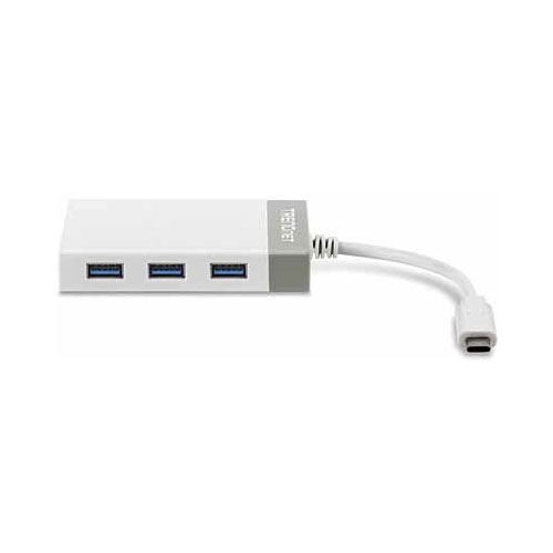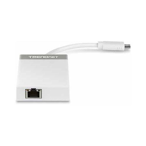 Der USB-C zu Gigabit Adapter + USB Hub von TRENDnet, Modell TUC-ETGH3, fügt einem Windows oder Mac Computer einen Gigabit Ethernet Port und drei 5 Gbit/s SuperSpeed USB 3.0 Ports hinzu. Die Installation ist einfach – stecken Sie einfach Flashlaufwerke, Drucker, Scanner und andere USB 3.0 Geräte ein für Geschwindigkeiten, die zehnmal schneller sind als eine USB 2.0 Verbindung. Diese Kombination aus USB-C Adapter und Hub ist auch kompatibel mit USB 2.0 und 1.1 Geräten.