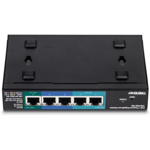 Trendnet TPE-P521ES. Switch-Typ: Managed. Basic Switching RJ-45 Ethernet Ports-Typ: Gigabit Ethernet (10/100/1000), Anzahl der basisschaltenden RJ-45 Ethernet Ports: 5. MAC-Adressentabelle: 2048 Eintragungen, Routing-/Switching-Kapazität: 10 Gbit/s. Netzstandard: IEEE 802.1D, IEEE 802.1Q, IEEE 802.1p, IEEE 802.1w, IEEE 802.3, IEEE 802.3ab, IEEE 802.3ad, IEEE.... Power over Ethernet (PoE). Wandmontage
