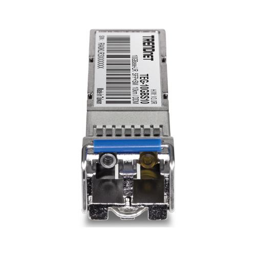 Trendnet TEG-10GBS10. SFP Transceiver-Typ: Faseroptik, Maximale Datenübertragungsrate: 10000 Mbit/s, Schnittstelle: SFP+. Stromverbrauch (Standardbetrieb): 0,522 W. Zertifizierung: CE, FCC. Breite: 14,8 mm, Tiefe: 56,5 mm, Höhe: 11,8 mm