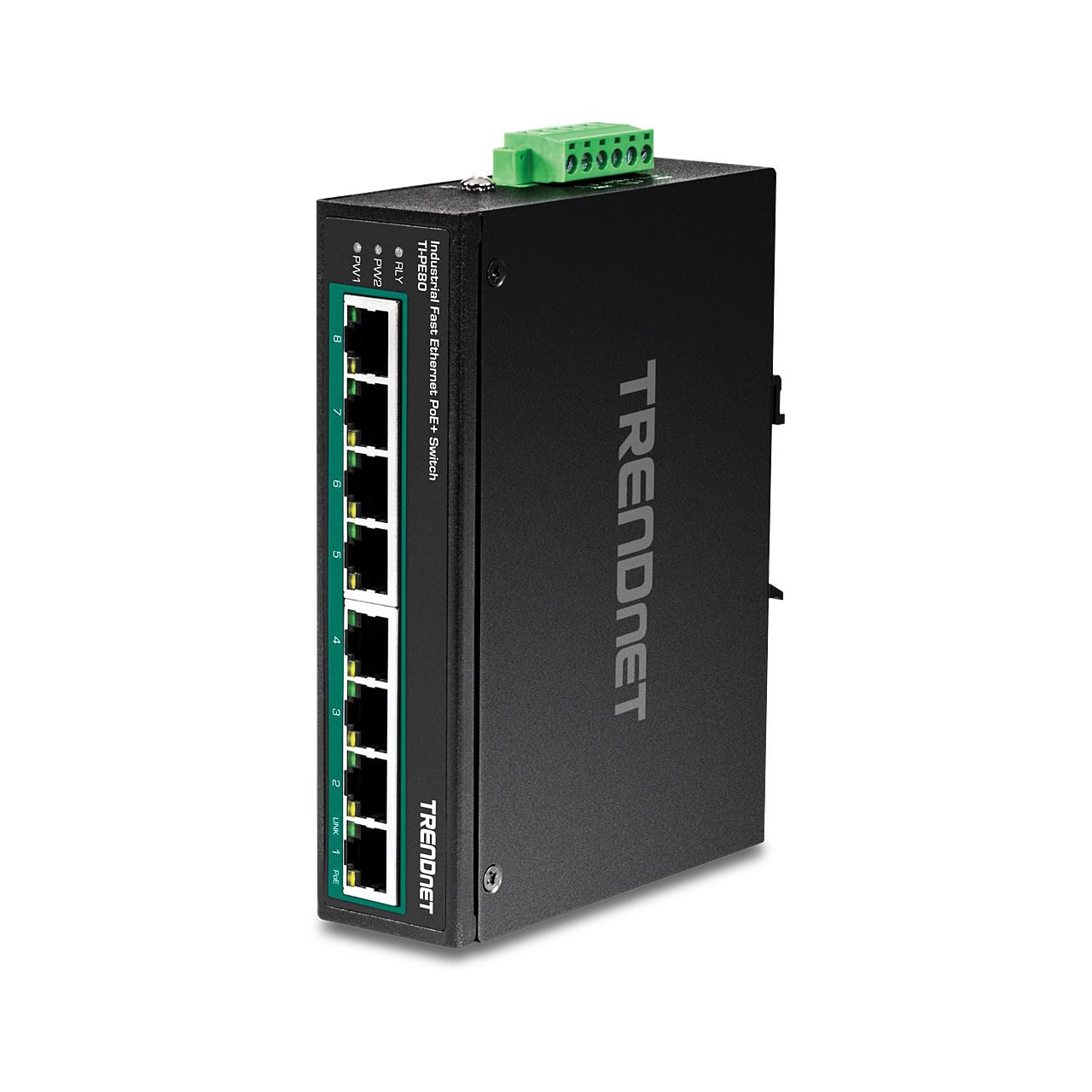 Trendnet TI-PE80. Switch-Typ: Unmanaged. Basic Switching RJ-45 Ethernet Ports-Typ: Fast Ethernet (10/100), Anzahl der basisschaltenden RJ-45 Ethernet Ports: 8. Vollduplex. MAC-Adressentabelle: 1000 Eintragungen, Routing-/Switching-Kapazität: 1,6 Gbit/s. Netzstandard: IEEE 802.3, IEEE 802.3ab, IEEE 802.3af, IEEE 802.3at, IEEE 802.3u, IEEE 802.3x. DC input Spannung: 48 - 56 V. Power over Ethernet (PoE). Wandmontage