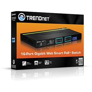 TRENDnet's 16-Port Gigabit Web Smart PoE+ Switch, Modell TPE-1620WS, bietet 32 GBit/s Schaltleistung mit 16 PoE+ Gigabit Ports und zwei gemeinsamen SFP-Steckplätzen. Dieser IPv6-fähige Schalter ermöglicht ein erweitertes Traffic Management, Fehlerbehebung, Sicherheit, Energie sparendes GREENnet und Überwachungsfunktionen zum reduzierten Preis.