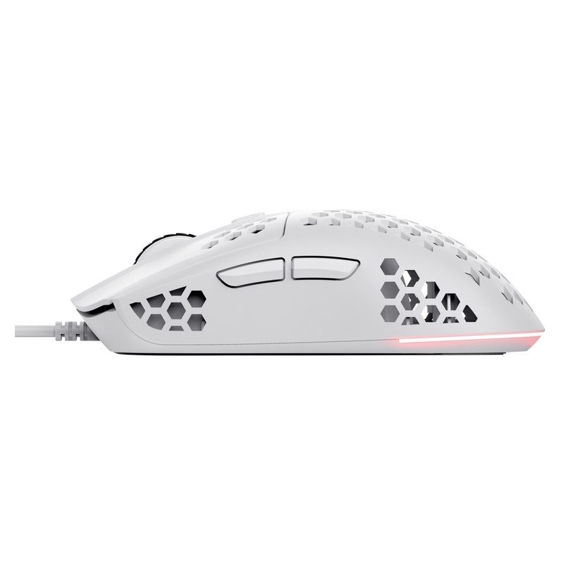 Trust GXT 928 HELOX. Formfaktor: rechts. Bewegungerfassungs Technologie: Optisch, Geräteschnittstelle: USB Typ-A, Bewegung Auflösung: 6400 DPI, Tastentyp: Gedrückte Tasten, Knopfanzahl: 6, Scroll Typ: Rad. Farben der Beleuchtung: Multi. Energiequelle: Kabel. Produktfarbe: Weiß