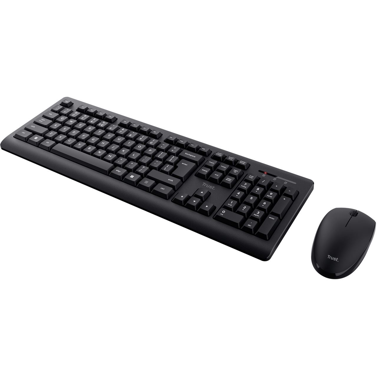 Trust Primo. Tastatur Formfaktor: Volle Größe (100%), Übertragungstechnik: Kabellos, Geräteschnittstelle: RF Wireless, Tastatur-Switch: Membran Key Switch, Tastaturaufbau: QWERTZ, Empfohlene Nutzung: Büro. Produktfarbe: Schwarz. Maus enthalten