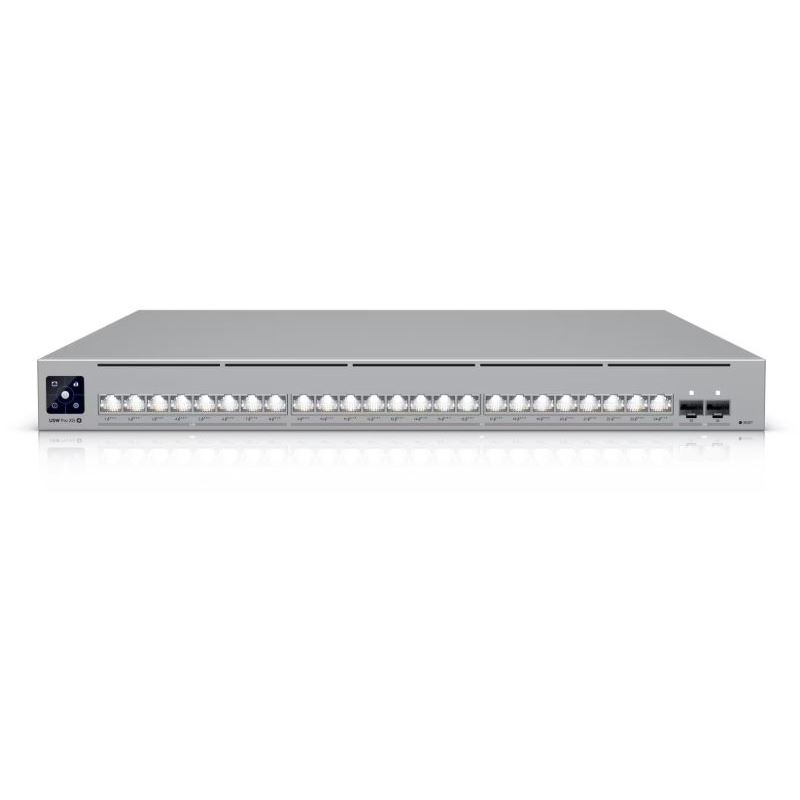 Ubiquiti UniFi Pro XG 24 PoE. Switch-Typ: Managed, Switch-Ebene: L3. Basic Switching RJ-45 Ethernet Ports-Typ: 10G Ethernet (100/1000/10000), Anzahl der basisschaltenden RJ-45 Ethernet Ports: 24. MAC-Adressentabelle: 128000 Eintragungen, Routing-/Switching-Kapazität: 460 Gbit/s. Netzstecker: AC/DC. Power over Ethernet (PoE). Rack-Einbau, Formfaktor: 1U