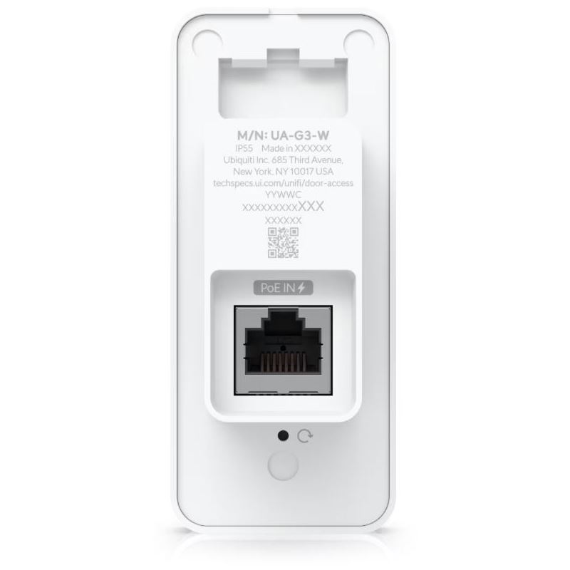 Ubiquiti UA-G3-W. Lautsprecherleistung: 0,7 W. Ethernet LAN Datentransferraten: 10,100,1000 Mbit/s. Stromverbrauch (max.): 5 W, DC Spannungsrange: 48 V. Breite: 40 mm, Tiefe: 36,5 mm, Höhe: 93 mm