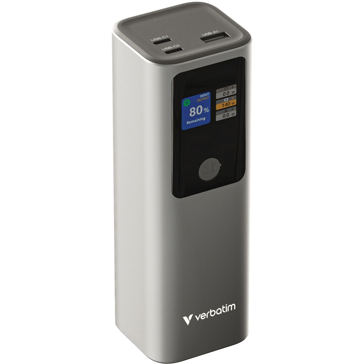 Verbatim 32269. Akku-/Batteriekapazität: 27000 mAh, Akku-/Batterietechnologie: Lithium-Ion (Li-Ion), Schnellladetechnik: Power Delivery 3.1, Quick Charge 3.0, Akku-/Batteriespannung: 3,7 V. USB-Typ-A-Ausgangsports: 1, USB Typ-C Anzahl Anschlüsse: 2. Gesamte Ausgangsleistung: 183 W, Ausgangsstrom: 5 A. Produktfarbe: Grau
